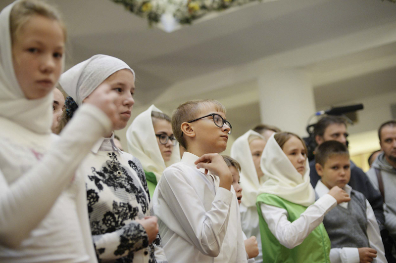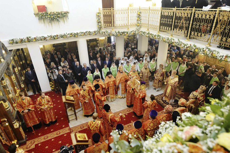 Богослужебные песнопения исполнил хор Московской духовной академии под управлением иеромонаха Нестора (Волкова).