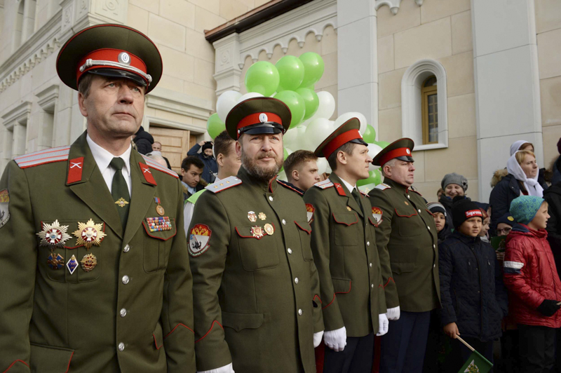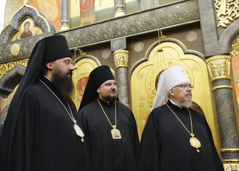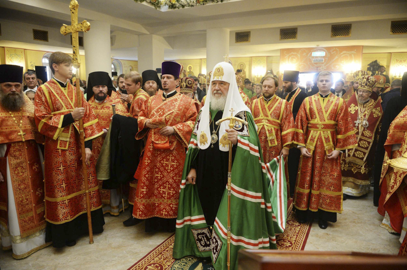 Его Святейшеству сослужили: митрополит Санкт-Петербургский и Ладожский Варсонофий, управляющий делами Московской Патриархии; митрополит Красноярский и Ачинский Пантелеимон; архиепископ Солнечногорский Сергий, руководитель Административного секретариата Московской Патриархии; епископ Канский и Богучанский Филарет; епископ Енисейский и Лесосибирский Никанор; епископ Норильский и Туруханский Агафангел; протоиерей Владимир Дорош, настоятель Покровского кафедрального собора г. Красноярска, руководитель административного секретариата Красноярской епархии; протоиерей Сергий Шачин, настоятель Александро-Невского храма при Красноярском кадетском корпусе имени А.И. Лебедя; протоиерей Андрей Марущак, клирик кафедрального соборного Храма Христа Спасителя г. Москвы; духовенство Красноярской митрополии.