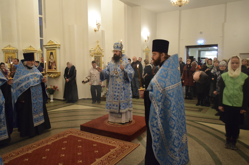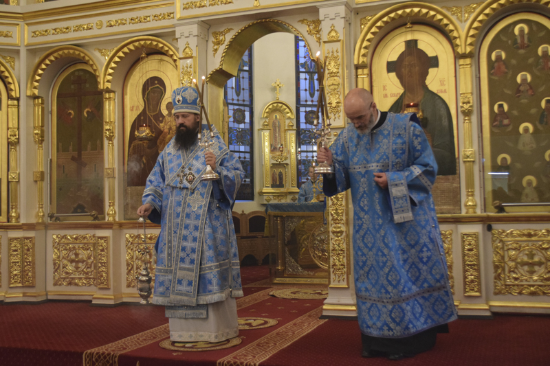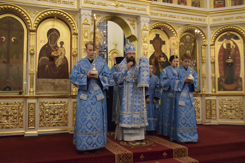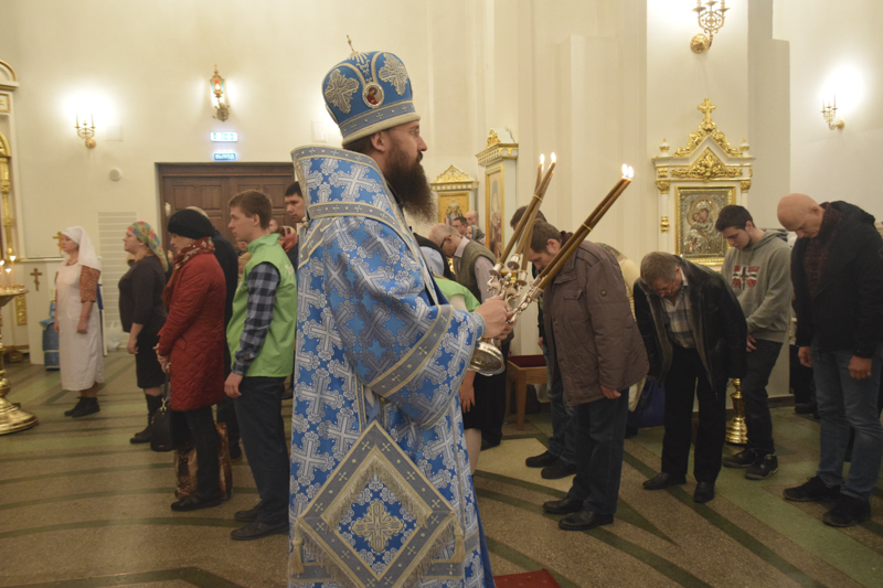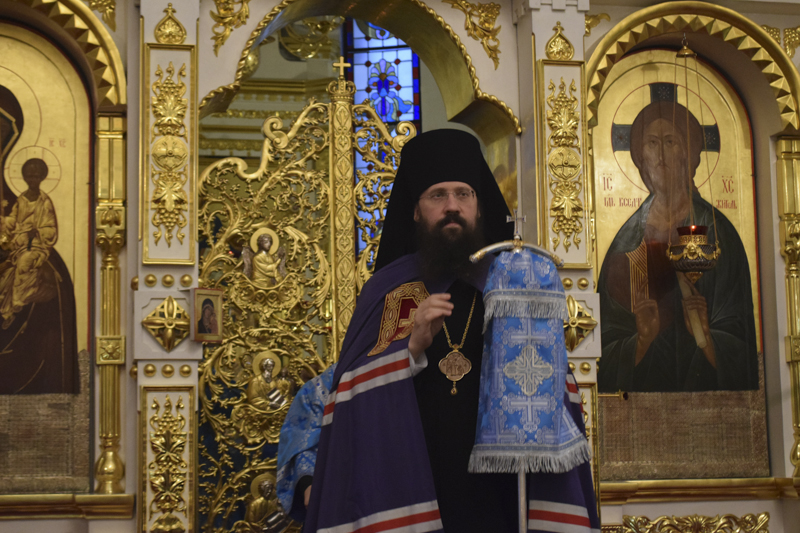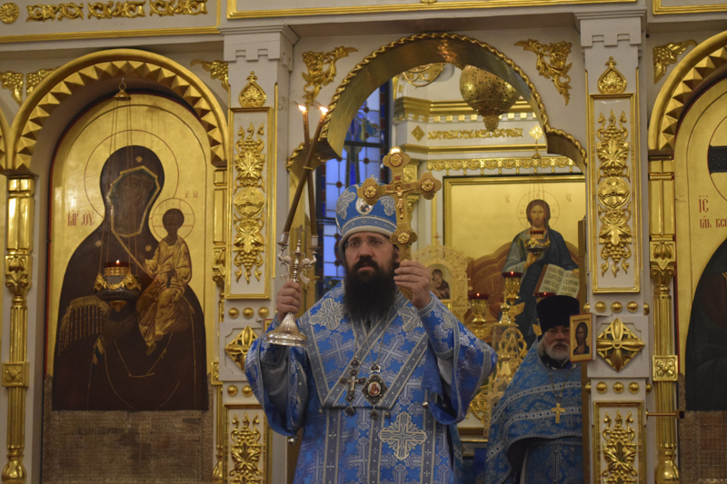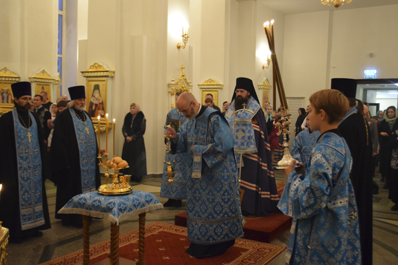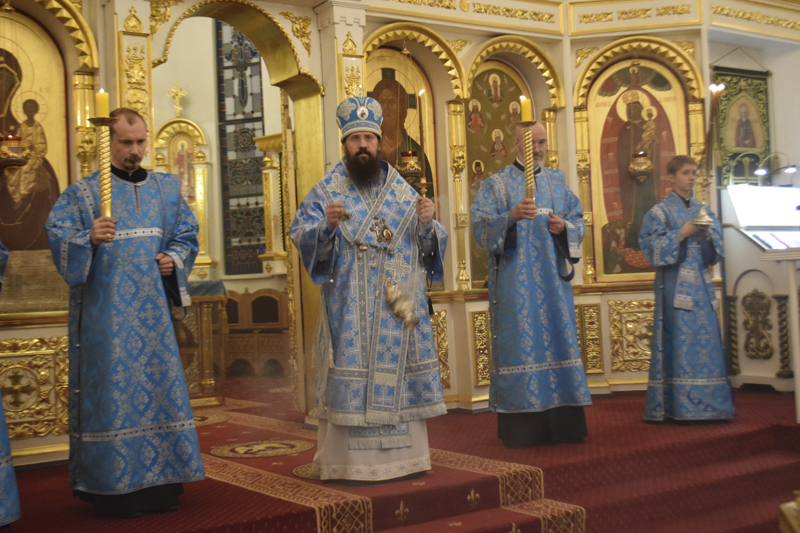 На кануне Архипастырь в сослужении духовенства совершил Всенощное бдение.