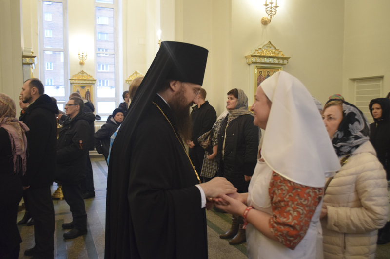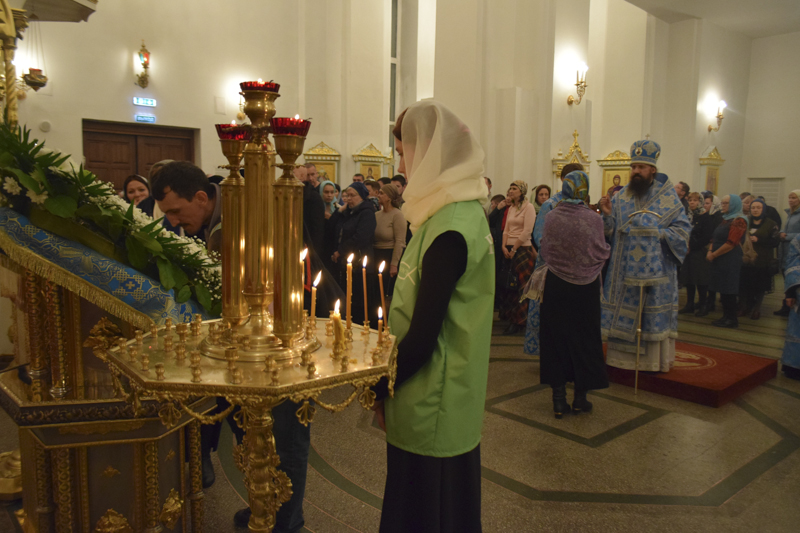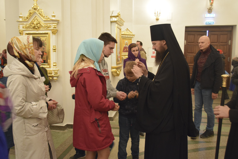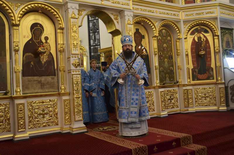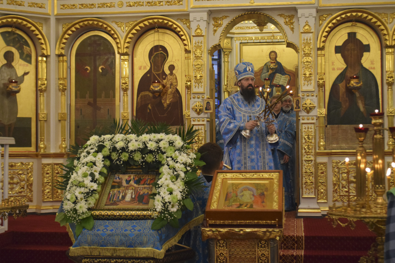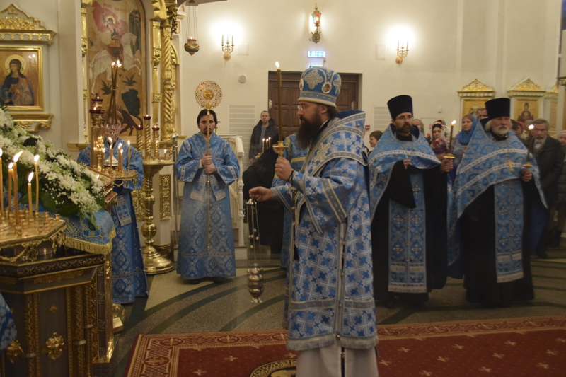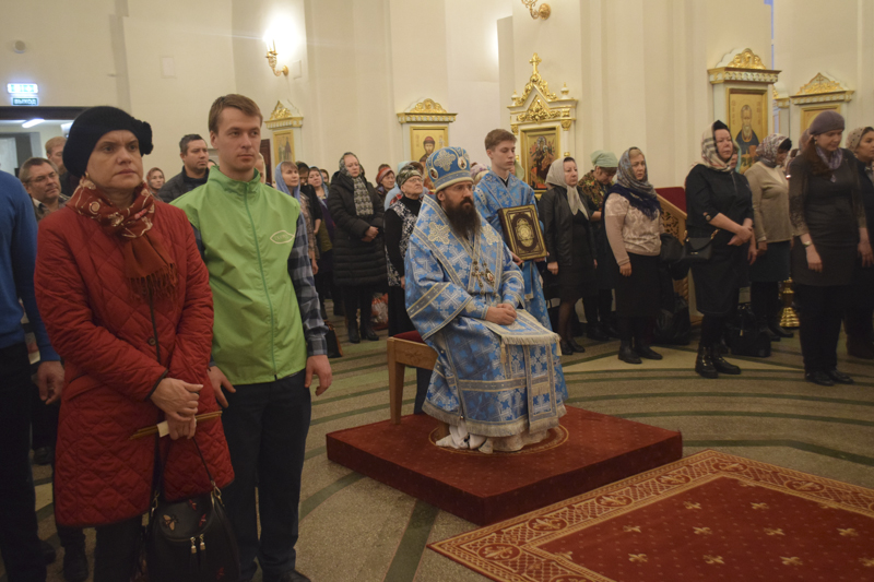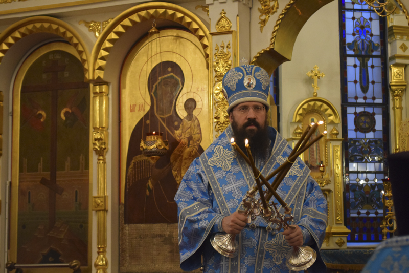 На кануне Архипастырь в сослужении духовенства совершил Всенощное бдение.