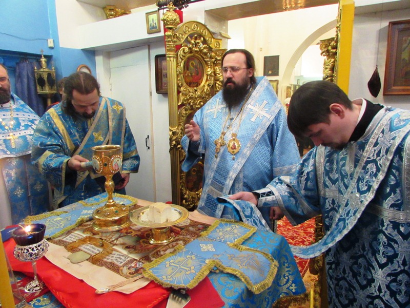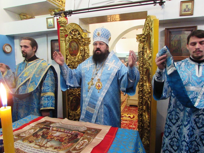 Правящий архиерей совершил в Введенском храме Божественную литургию. Ему сослужили исполняющий обязанности секретаря епархии иеромонах Герман (Мельников), благочинный Норильского округа протоиерей Владимир Иванов, благочинный Таймырского округа протоиерей Георгий Ицков, штатный клирик Свято-Введенского храма иерей Роман Шагиев.
