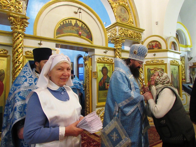 Владыка Агафангел поздравил православных Дудинки с храмовым праздником и обратился к ним с архипастырской проповедью. Затем были вручены архиерейские награды прихожанам храма за труды понесенные во славу Православной Церкви.