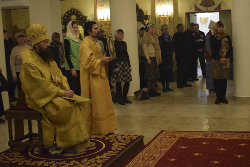 После чтения Евангелия Владыка обратился к собравшимся со словами проповеди на тему Евангельского повествования.