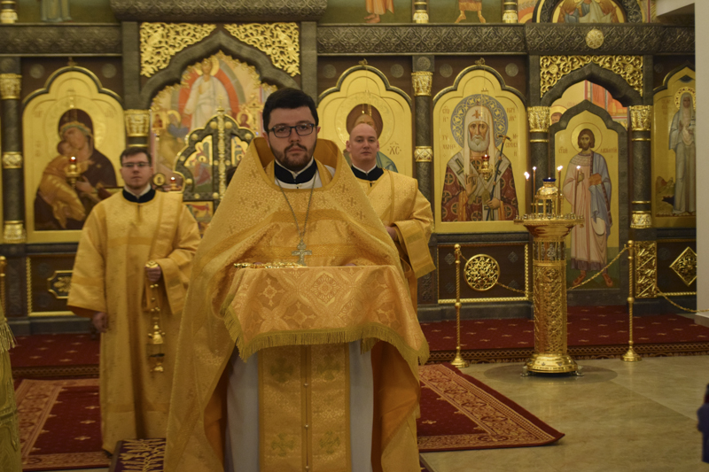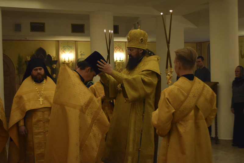 На малом входе, во внимание к усердным трудам на благо Русской Православной Церкви, иерей Романа Трофимов был удостоен права ношения камилавки