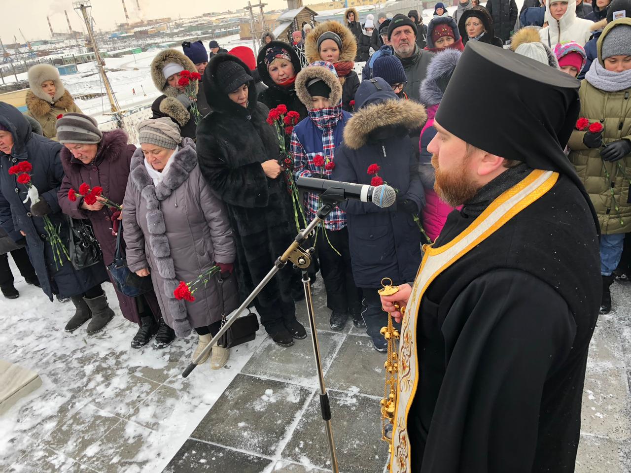 По благословению Преосвященнейшего Агафангела, епископа Норильского и Туруханского, духовенство кафедрального собора в честь иконы Божией Матери «Всех скорбящих Радость» города Норильска совершили заупокойную литию.По окончании богослужения собравшиеся возложили цветы к памятнику "Жертвам Норильлага" и зажги свечи в часовне Животворящего Креста в память о погибших.