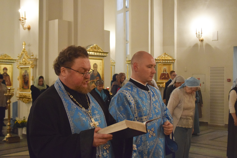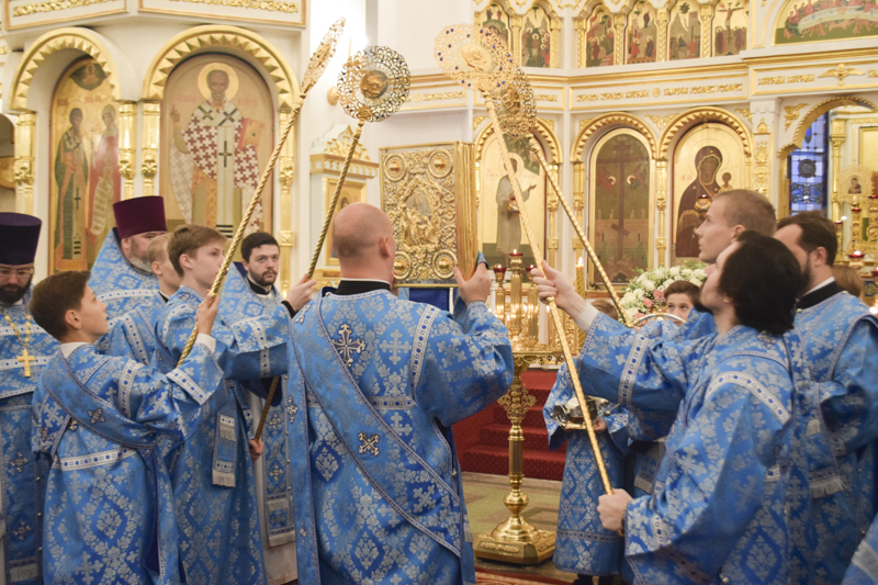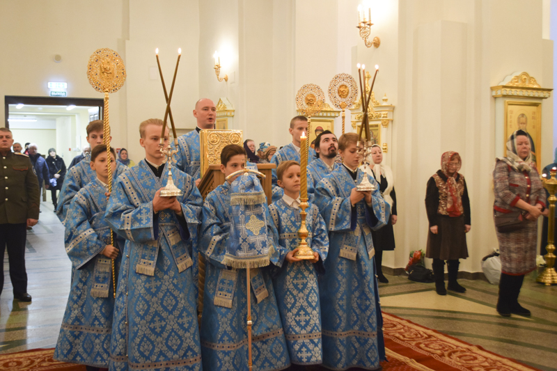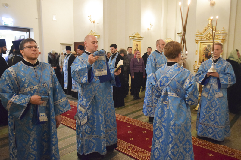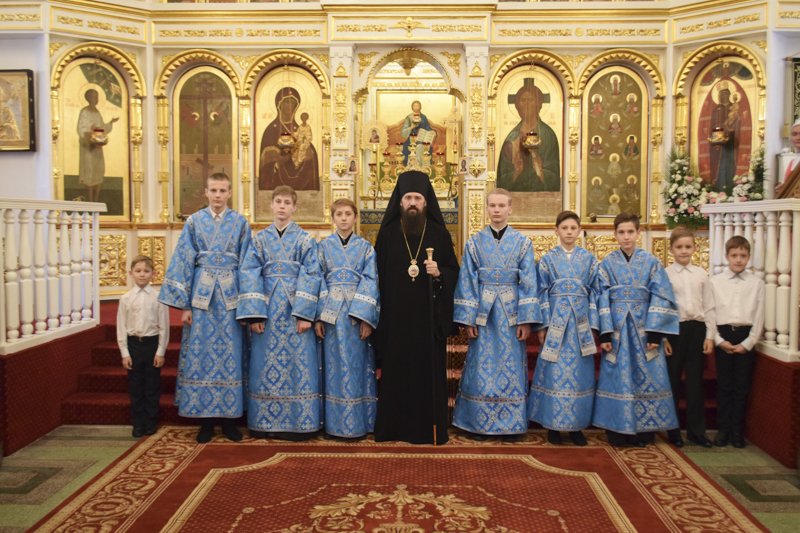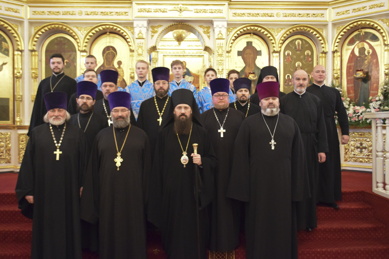 Его Преосвященству сослужили: секретарь Норильской епархии иеромонах Герман (Мельников); благочинный Таймырского округа протоиерей Георгий Ицков; благочинный Норильского округа протоиерей Владимир Иванов; руководитель епархиального отдела по борьбе с алкоголизмом и наркотической зависимостью протоиерей Даниил Тихонов; руководитель епархиального отдела по взаимодействию с вооруженными силами и силовыми структурами РФ протоиерей Димитрий Харцыз; ключарь кафедрального собора иерей Алексий Пирогов; клирик Свято-Введенского храма города Дудинки иерей Роман Шагиев; клирик Свято-Троицкого храма района Талнах города Норильска иерей Сергий Кузьменко; руководитель отдела Норильской епархии социального служения и церковной благотворительности иерей Сергий Андреев; руководитель отдела Норильской епархии иерей Димитрий Прохоров; соборное духовенство.