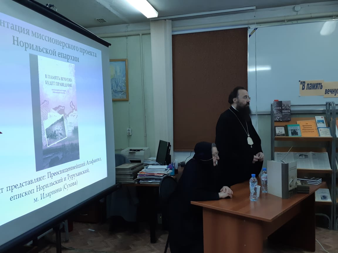 9 декабря 2018 года в Туруханске в помещении районной библиотеки состоялась презентация нового миссионерского проекта Норильской епархии-книги «В память вечную будет праведник», -издание которой приурочено к освящению храма в честь новомучеников и исповедников Церкви Русской в городе Норильске.