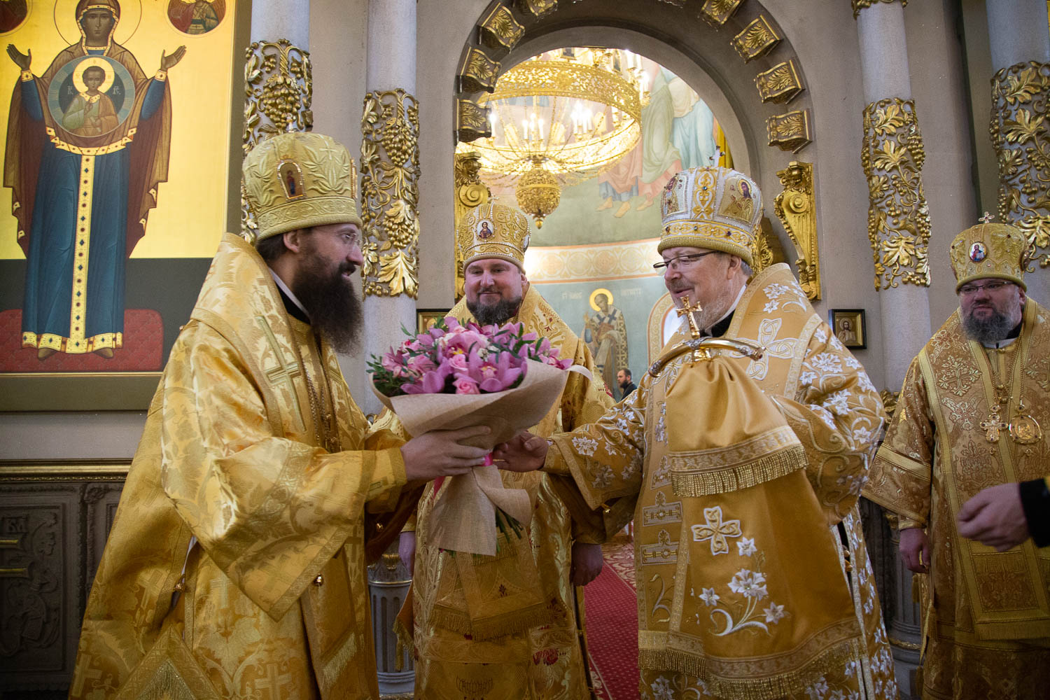 По окончании Божественной литургии иерархи Красноярской митрополии поздравили Митрополита Пантелеимона с 63-летием и преподнесли ему памятные подарки.
