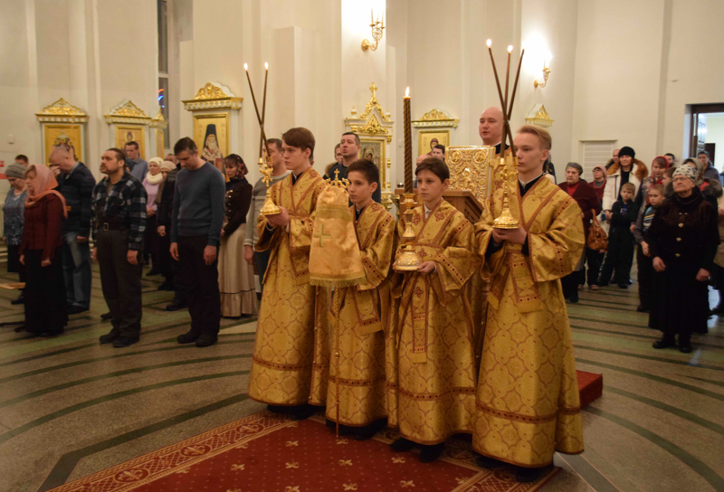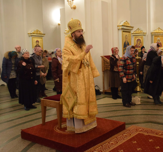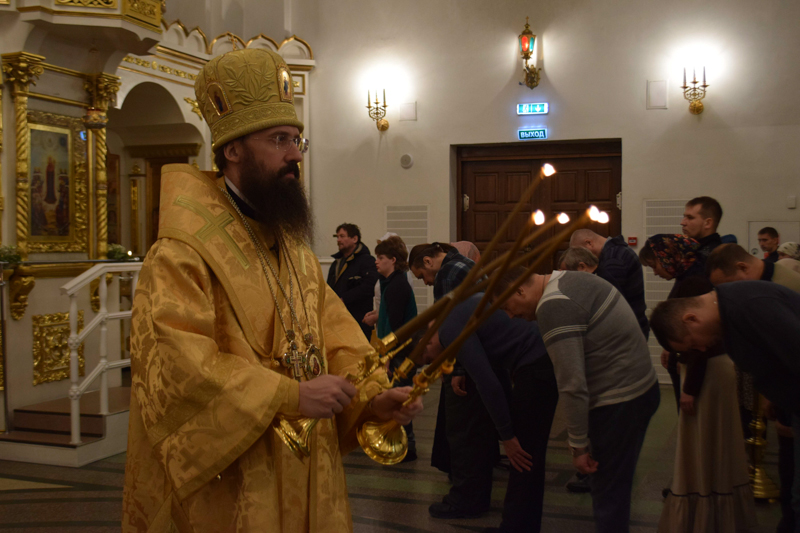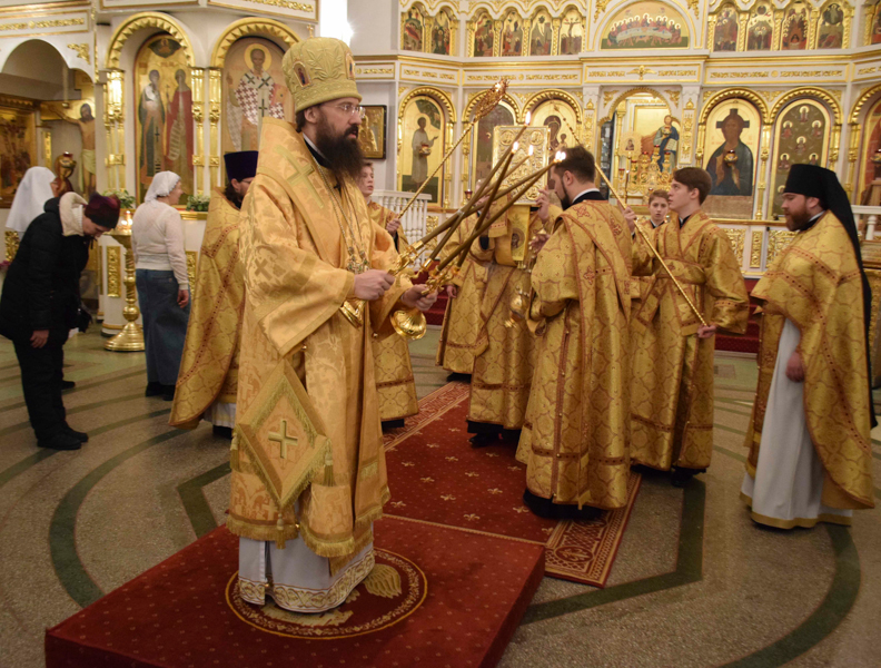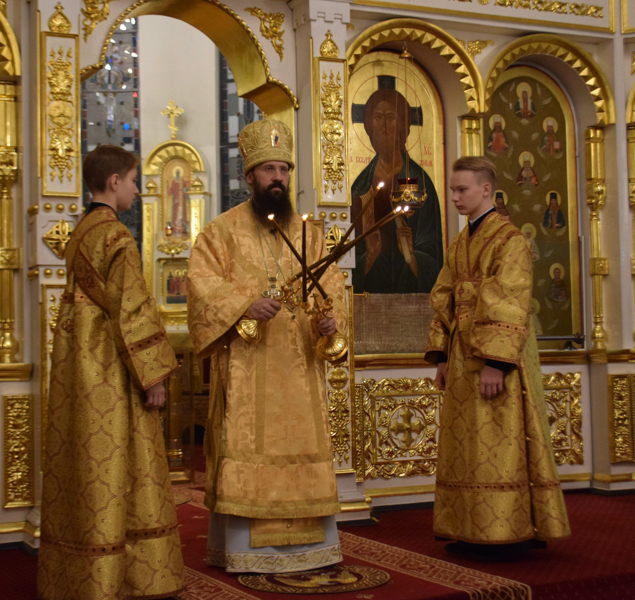 На кануне Архипастырь в сослужении духовенства совершил Всенощное бдение.