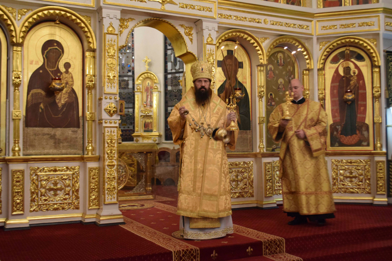 На богослужении возносились сугубые молитвы о мире на Украине и единстве православия.