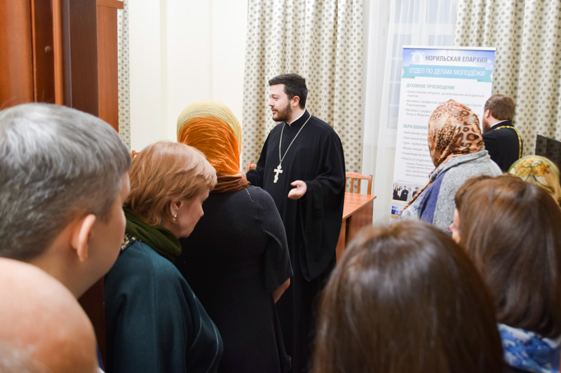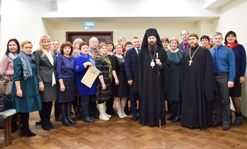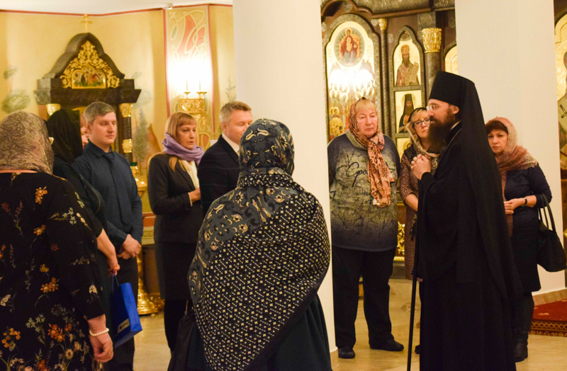 После сотрудники организации собрались в актовом зале храмового комплекса. К собравшимся обратился Владыка Агафангел и поблагодарил за понесенные труды и вклад в дело строительства храмового комплекса.