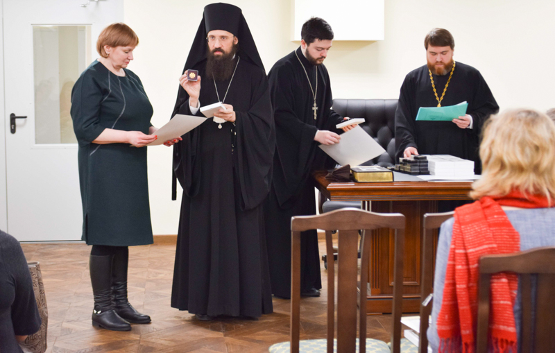 Архипастырь вручил собравшимся благословенные Архиерейские грамоты и памятные подарки.