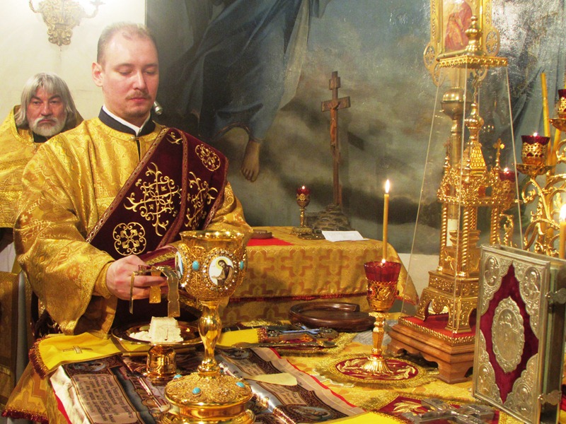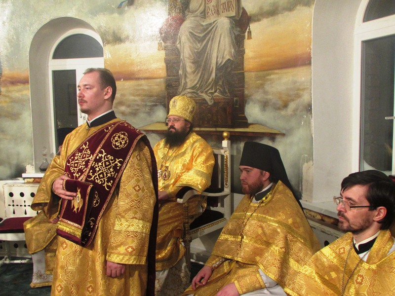 Его Преосвященству сослужили: исполняющий обязанности секретаря Норильской епархии иеромонах Герман (Мельников), Благочинный Норильского округа протоиерей Владимир Иванов и штатные клирики кафедрального собора.