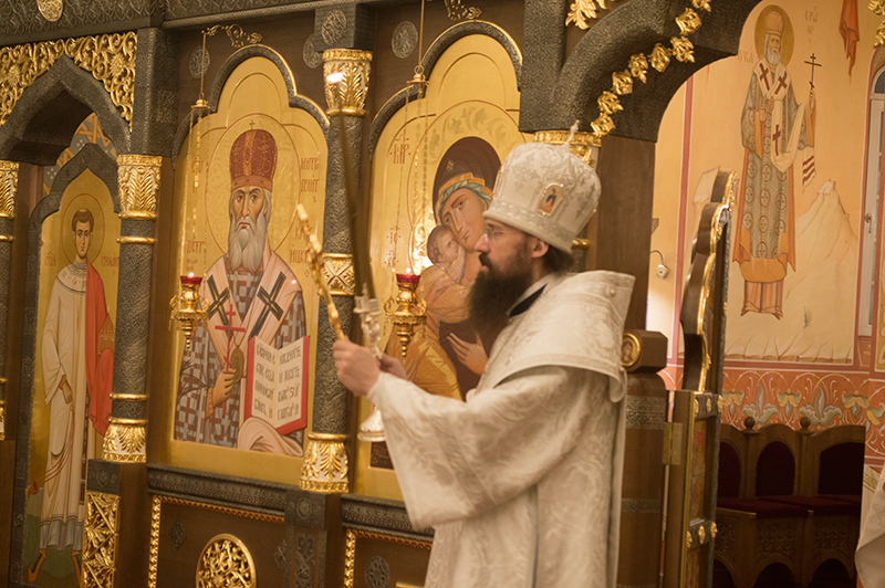 По окончании Богослужения духовенство во главе с Архипастырем совершили положенное славление, после чего епископ обратился к верующим со словами проповеди.