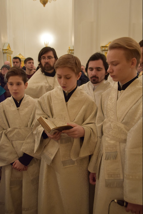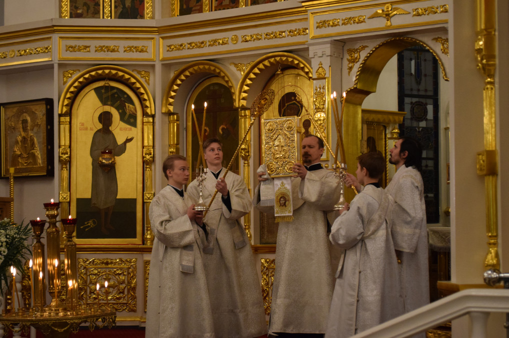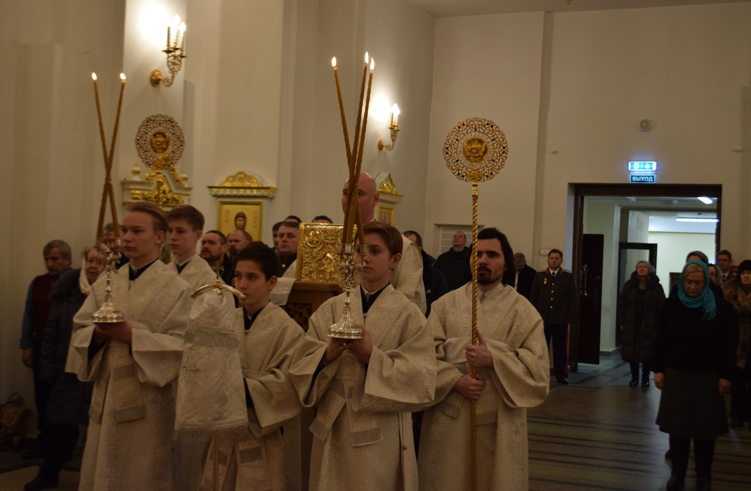 Его Преосвященству сослужили: секретарь Норильской епархии иеромонах Герман (Мельников); благочинный Норильского округа протоиерей Владимир Иванов; штатные клирики кафедрального собора.