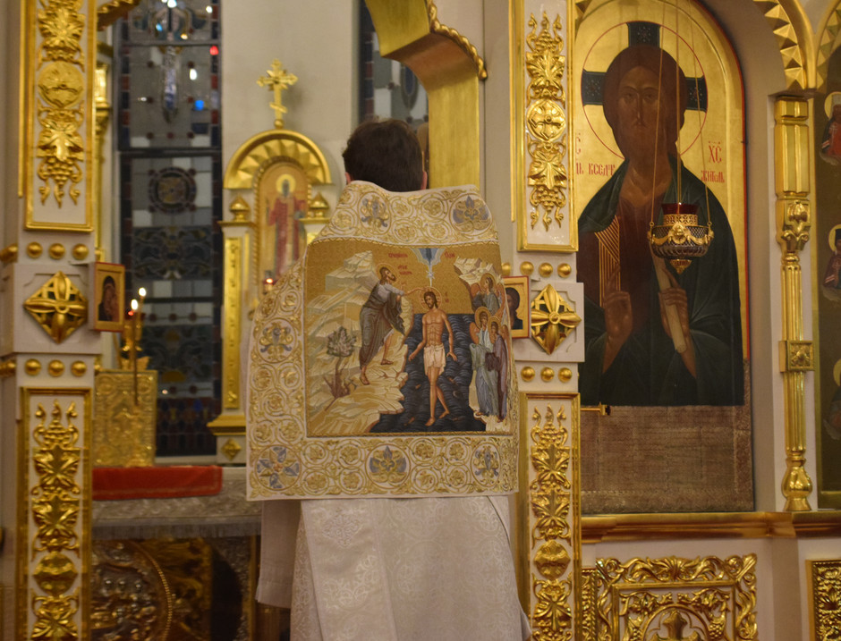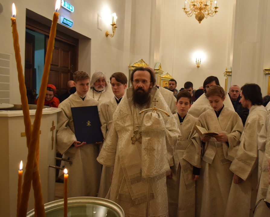 По окончании Божественной литургии Преосвященнейший Владыка совершил чин великого освящения воды и обратился к прихожанам со словами проповеди.