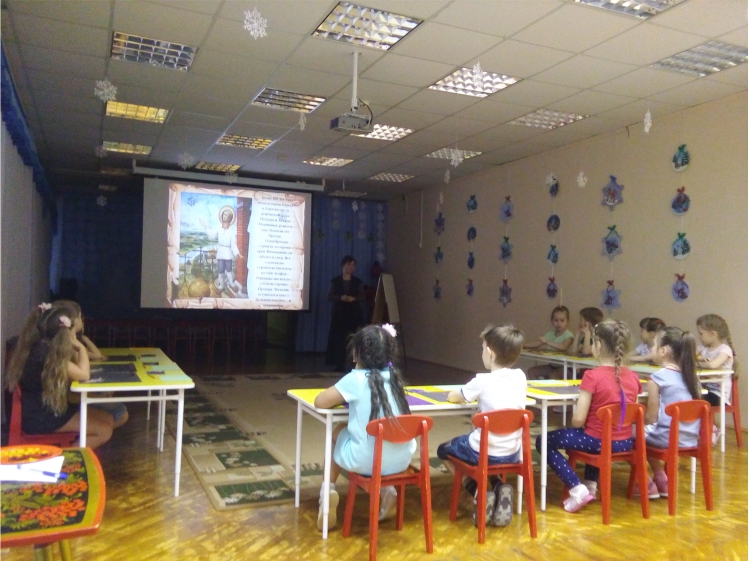 14 февраля 2019 года в детском саду № 32 «Снегирёк» для воспитанников старшей и подготовительной групп прошло интегрированное занятие о жизни великого Русского святого - преподобного Серафима Саровского.
