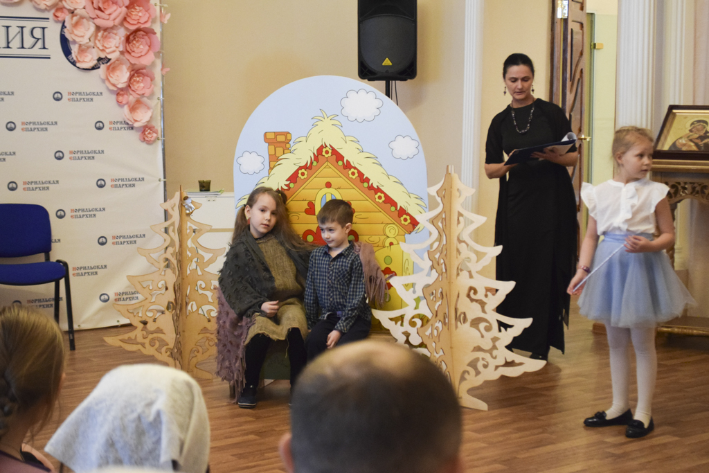 Спектакль был организован и проведен педагогами и воспитанниками воскресной школы при кафедральном соборе в честь иконы Божией Матери «Всех скорбящих Радость» города Норильска. В зрительном зале присутствовали родители воспитанников воскресной школы, духовенство кафедрального собора и сотрудники епархиального управления