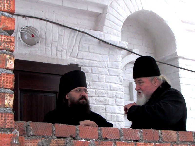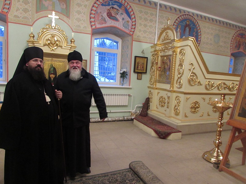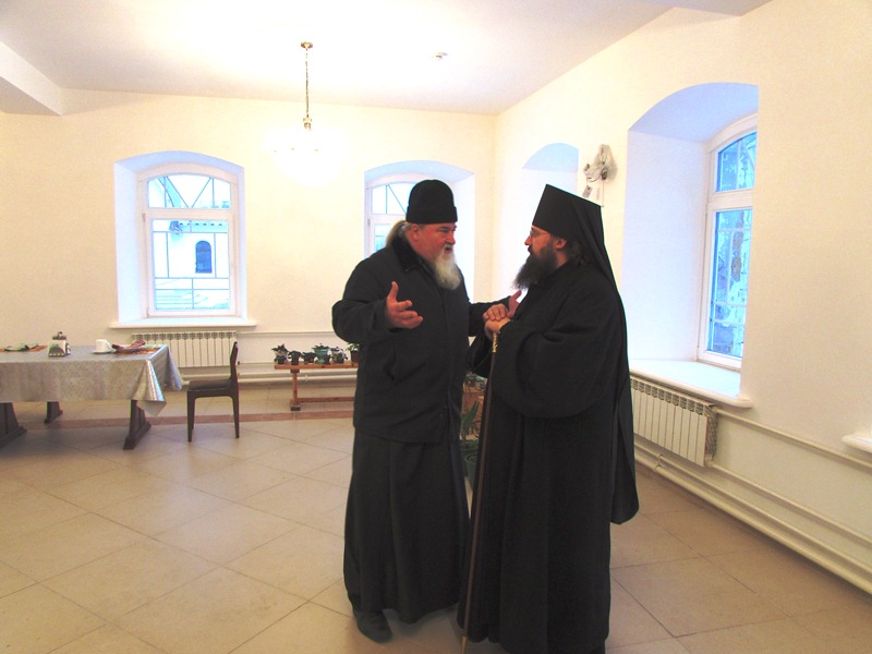 В сопровождениии наместника монастыря игумена Иннокентия (Нилова) и эконома монастыря игумена Иннокентия (Попова) Владыка Агафангел посетил строящийся храм в честь иконы Божией Матери "Всецарица" и действующий храм Успения Божией Матери.