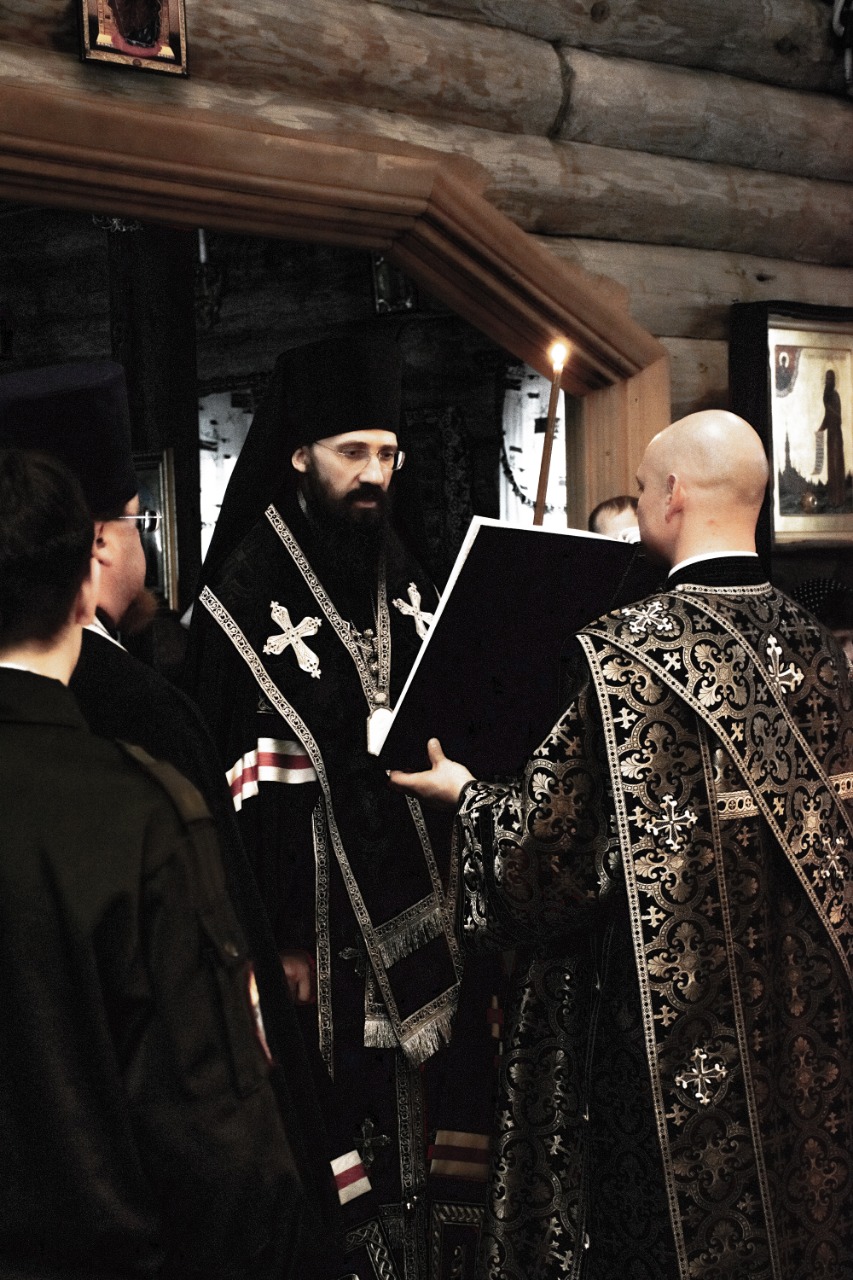 Его Преосвященству сослужили: благочинный Норильского округа протоиерей Владимир Иванов; настоятель Свято-Троицкого храма района Талнах протоиерей Даниил Тихонов; штатный клирик Свято-Троицкого храма иерей Сергий Кузьменко.