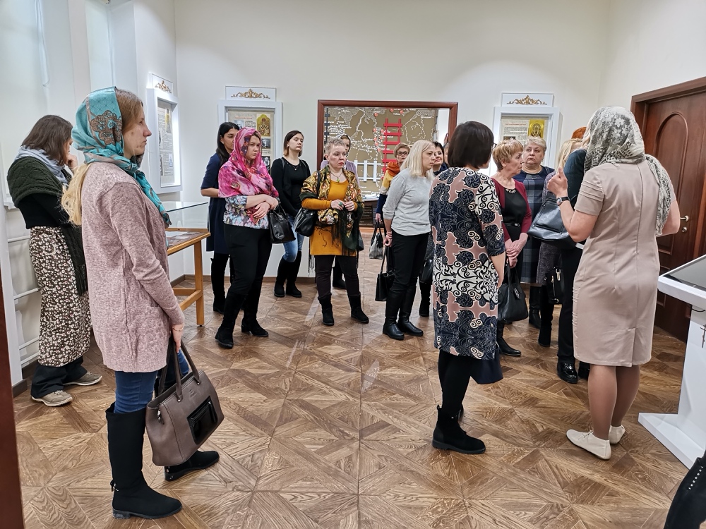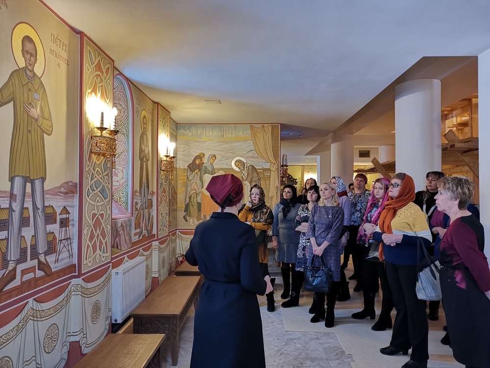 Учителя школ города побывали на ознакомительной экскурсии в храме, увидели росписи и побеседовали с иконописцами. Также педагоги посетили музей новомучеников и исповедников Церкви Русской и рассмотрели представленные экспозиции.