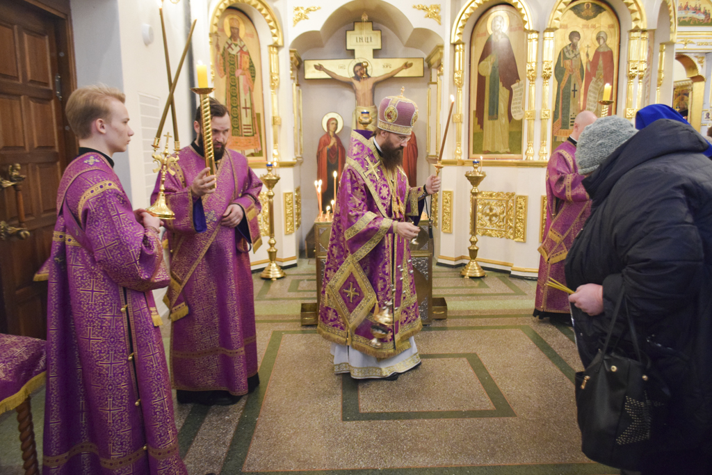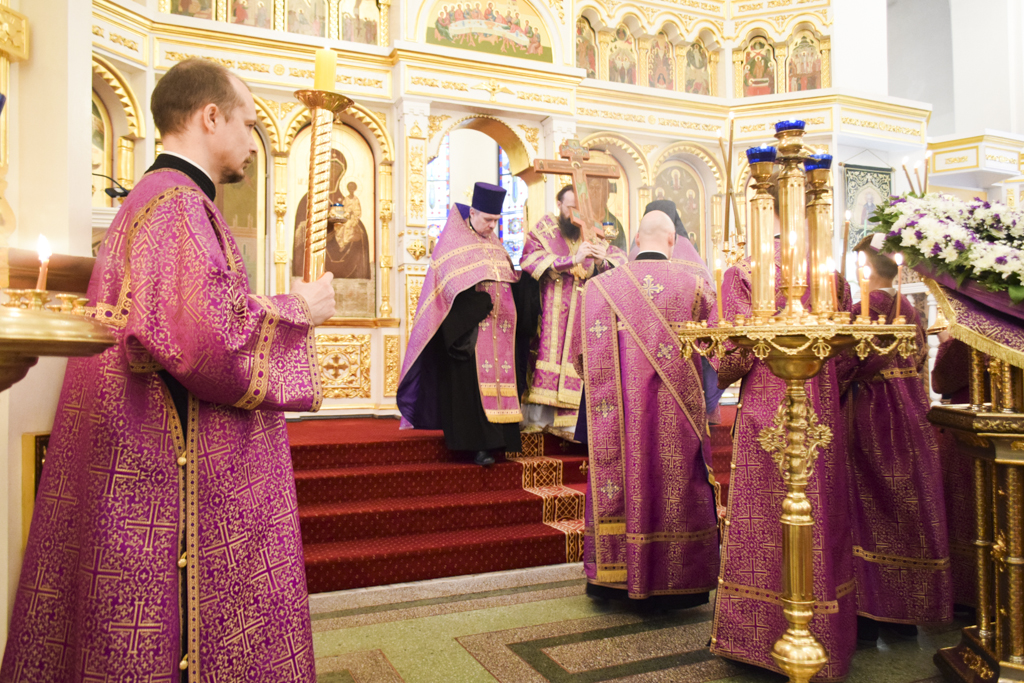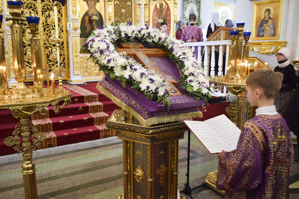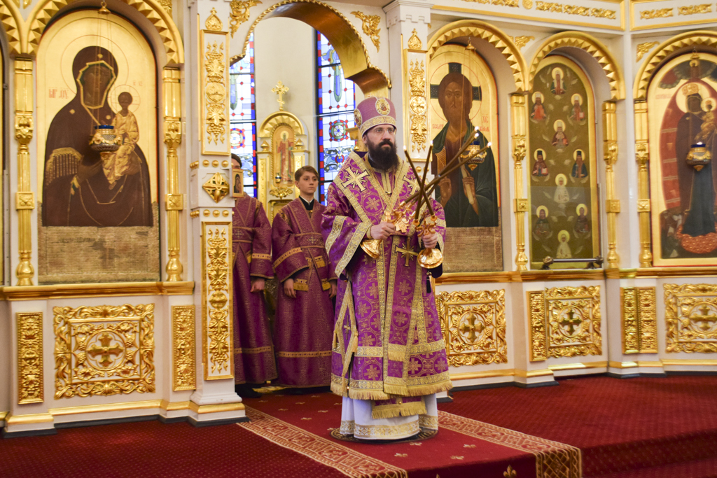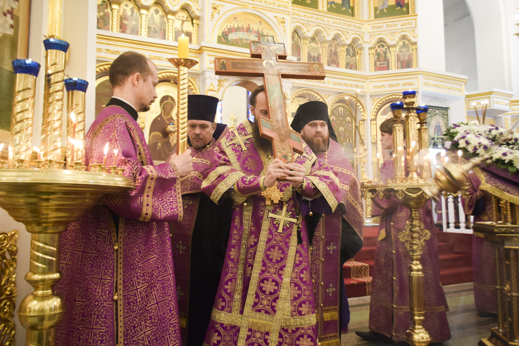 Накануне Владыка совершил Всенощное бдение в кафедральном соборе. После великого славословия Архипастырь совершил чин выноса Креста.