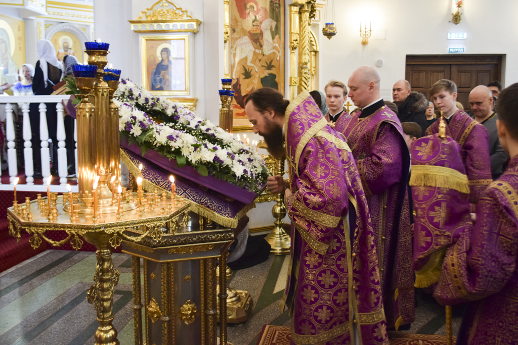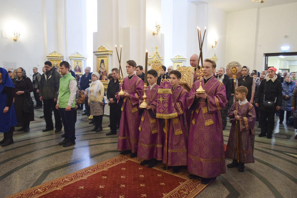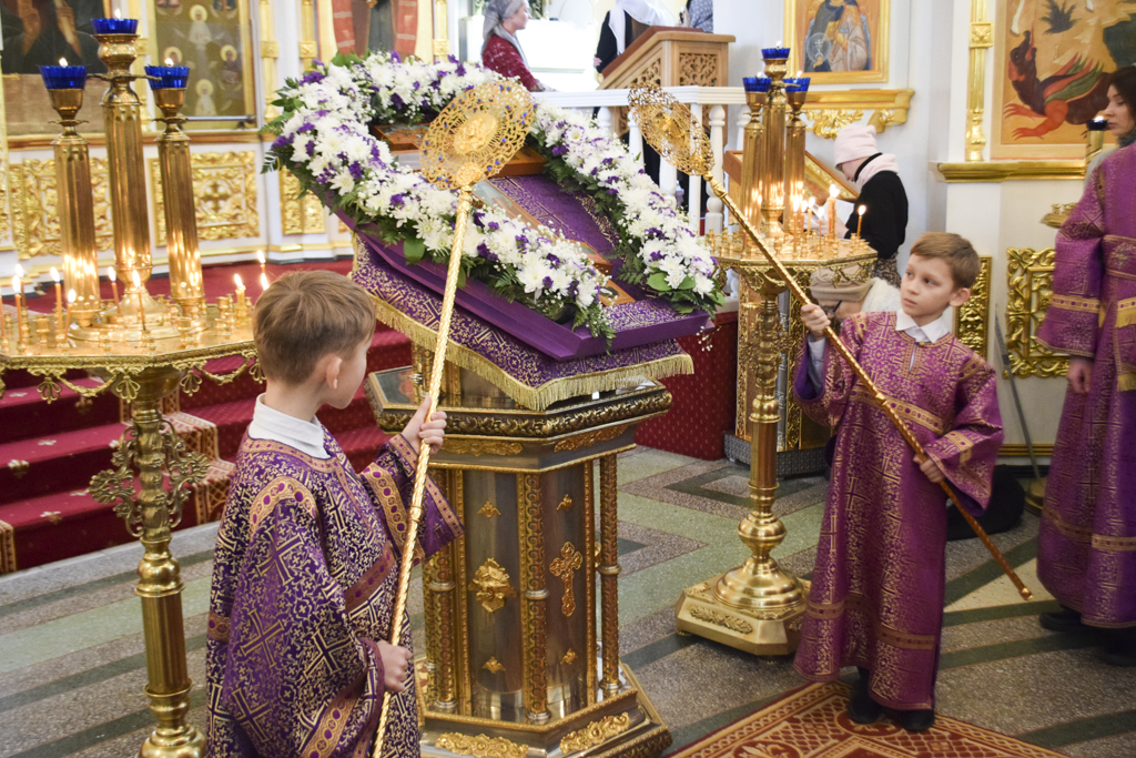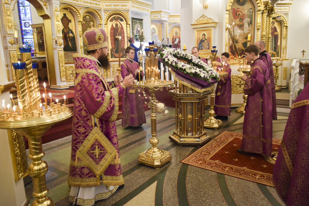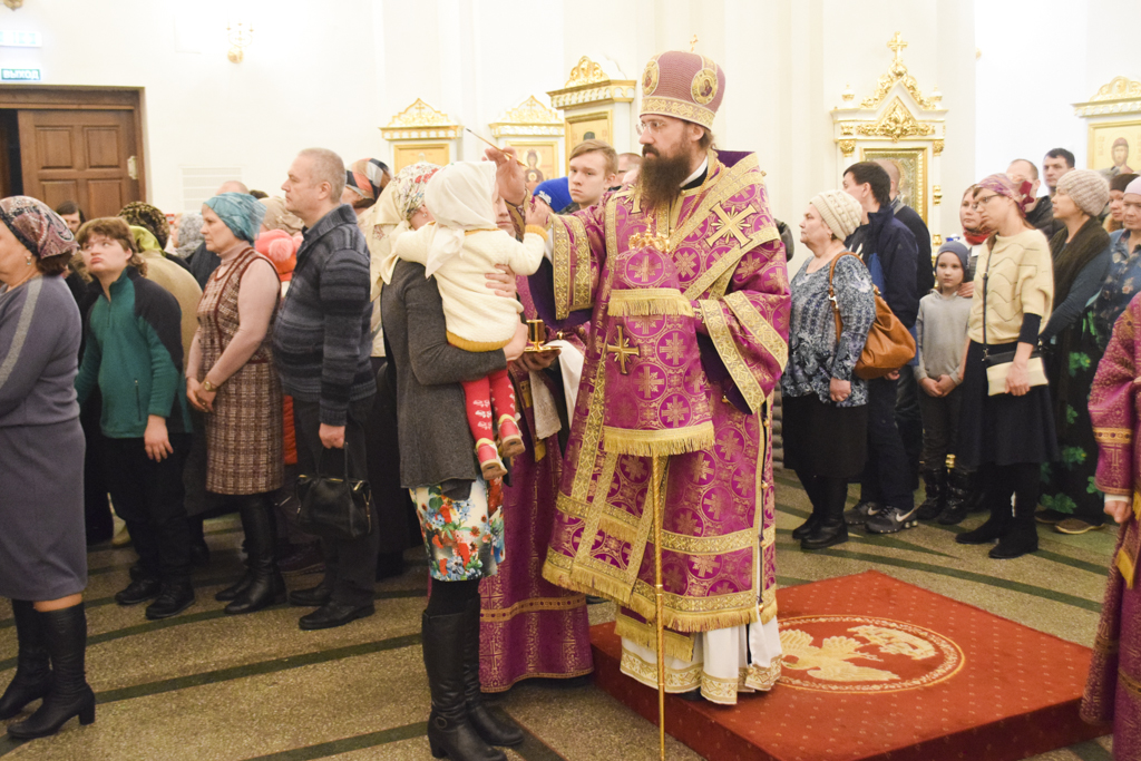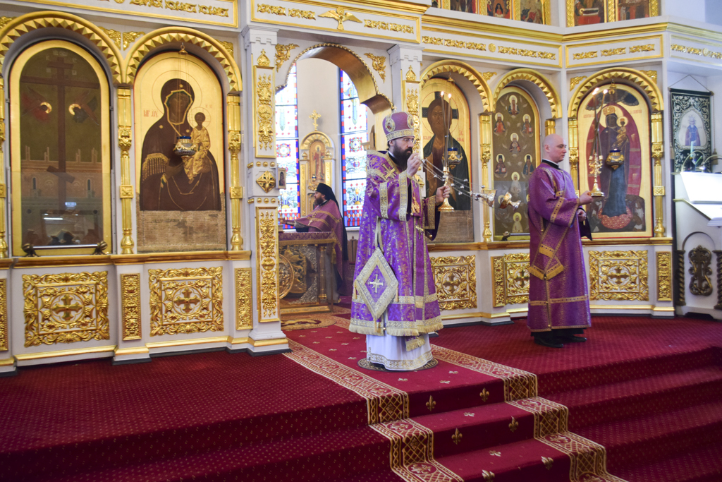 Накануне Владыка совершил Всенощное бдение в кафедральном соборе. После великого славословия Архипастырь совершил чин выноса Креста.