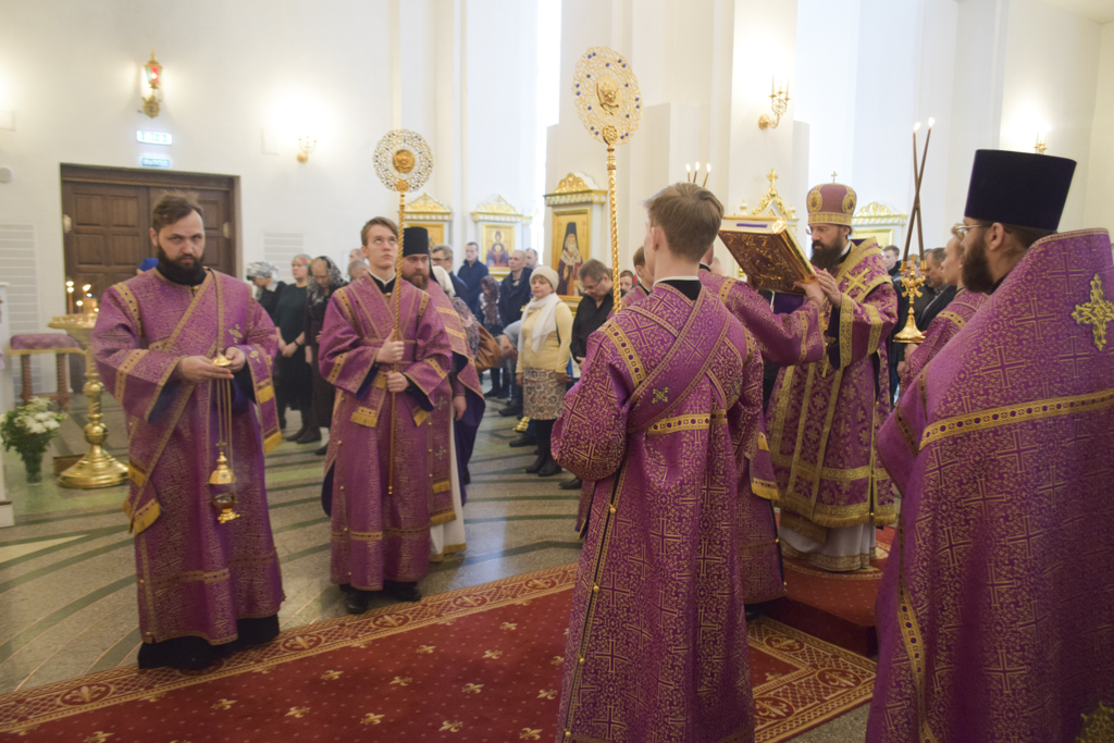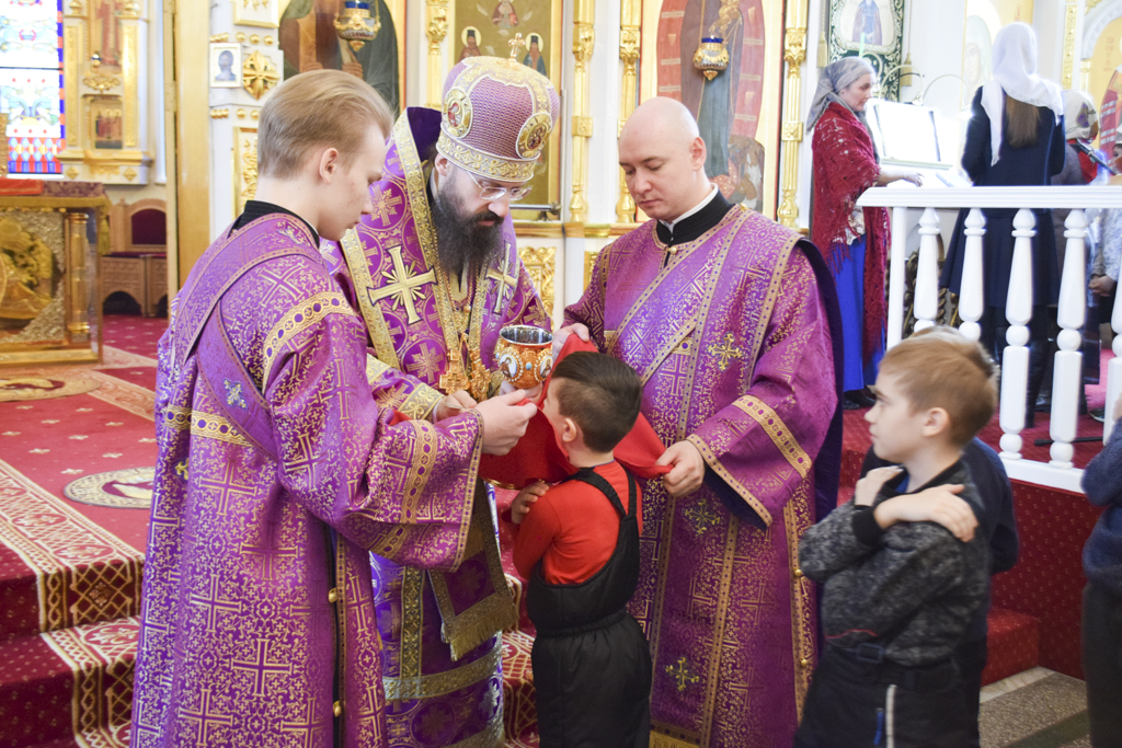 31 марта 2019 года, в неделю 3-ю Великого поста, Крестопоклонную, Преосвященнейший Агафангел, епископ Норильский и Туруханский совершил Божественную литургию святителя Василия Великого в кафедральном соборе в честь иконы Божией Матери «Всех скорбящих Радость» города Норильска.