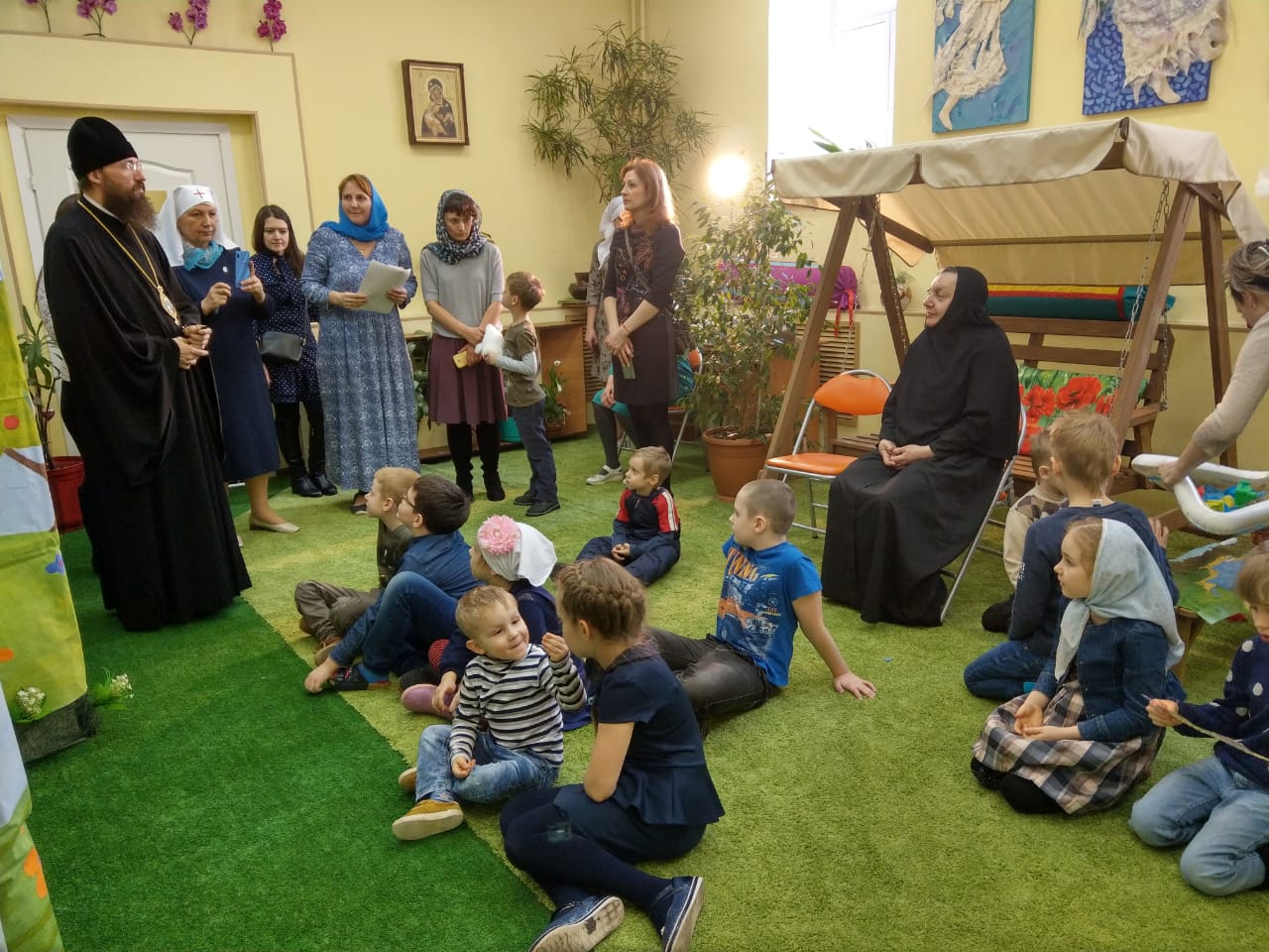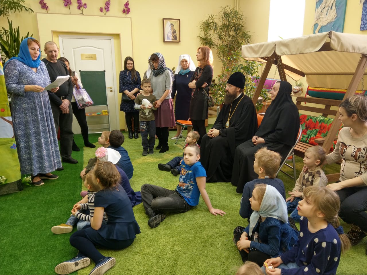 В рамках торжественного мероприятия педагоги и воспитанники воскресной школы показали гостям зимнего сада кукольный спектакль. Маленькие участники торжества приняли участия в интерактивных играх и посадили в отдельные горшочки зелёные саженцы. Каждый горшочек был подписан и ребята, в течении года, будут следить и ухаживать за своими растениями.