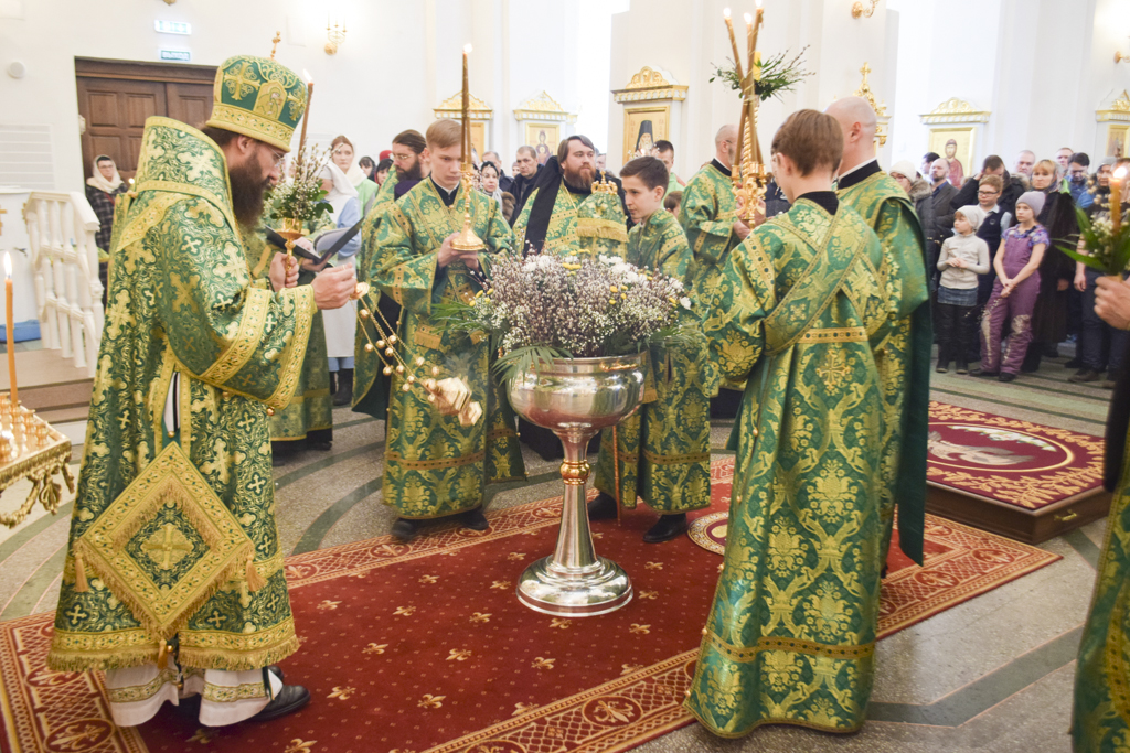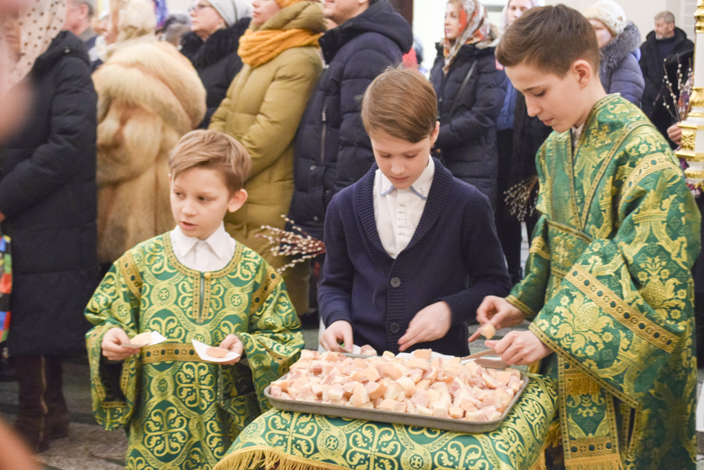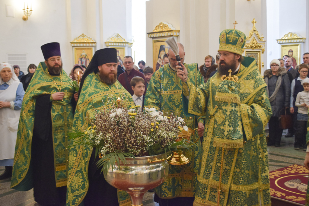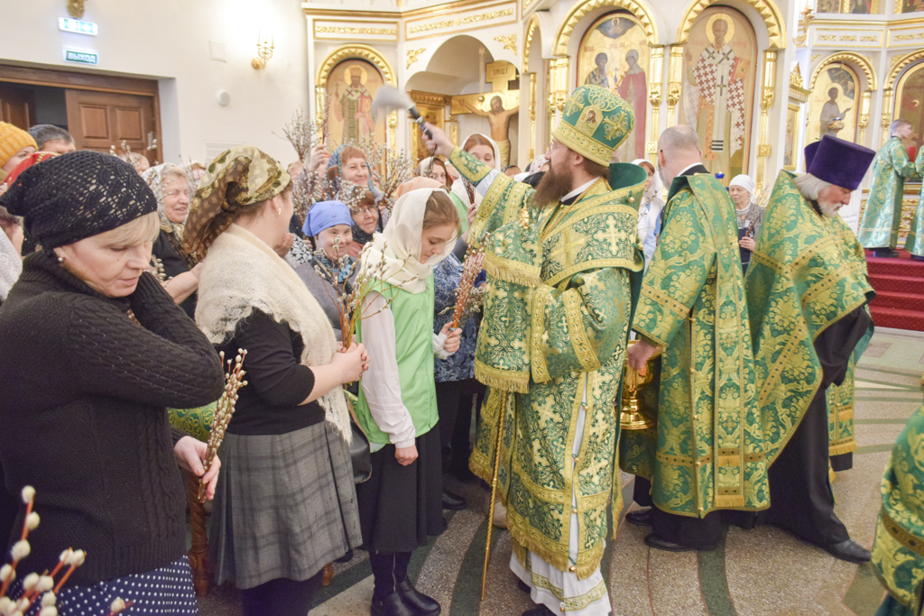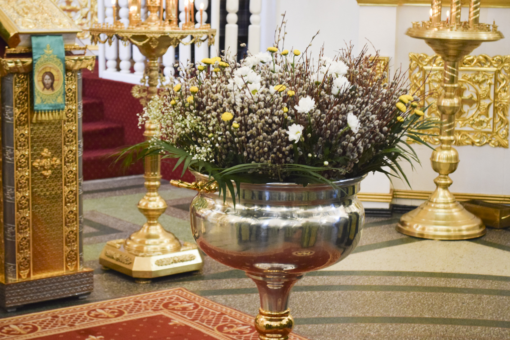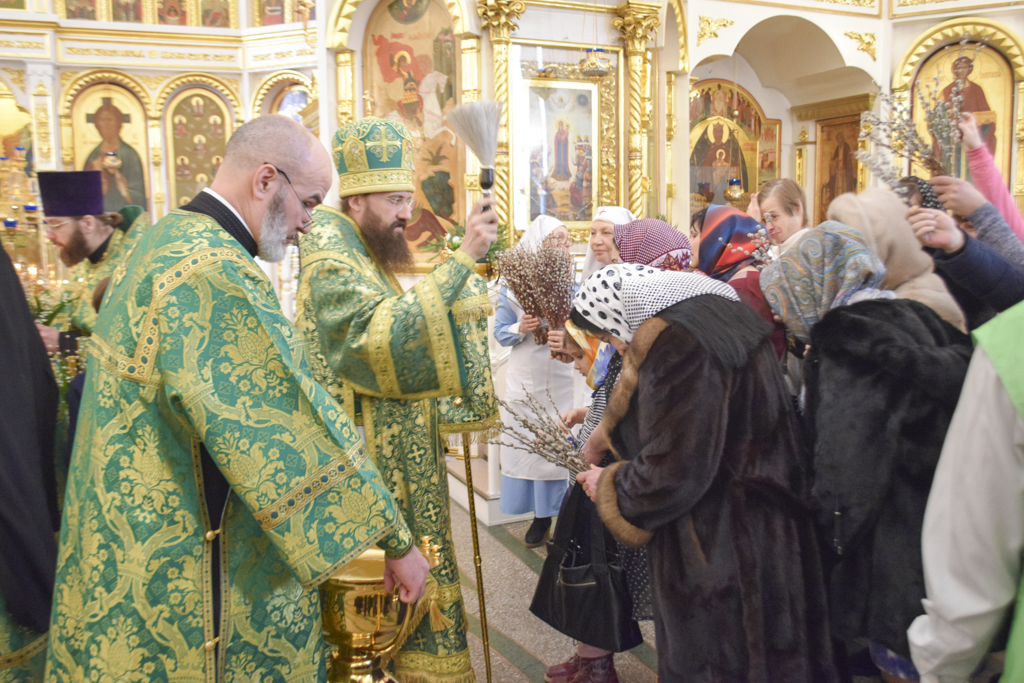 После чтения Евангелия Архипастырь совершил традиционное освящение вербы (ваий).