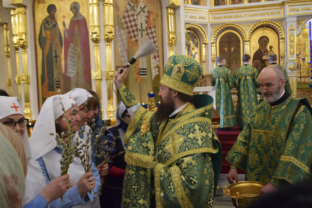 20 апреля 2019 года, в канун Недели 6-й Великого поста (ваий), празднования Входа Господня в Иерусалим, Преосвященнейший Агафангел, епископ Норильский и Туруханский, совершил всенощное бдение в кафедральном соборе в честь иконы Божией Матери «Всех скорбящих Радость» города Норильска.