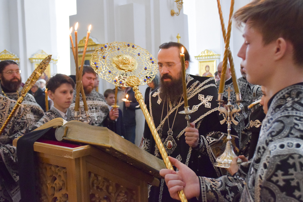 Вечером 25 апреля 2019 года, Преосвященнейший Агафангел, епископ Норильский и Туруханский совершил Утреню Великой Пятницы с чтением Евангелий Святых Страстей Господа, Бога и Спаса нашего Иисуса Христа в кафедральном соборе в честь иконы Божией Матери "Всех скорбящих Радость" города Норильска.