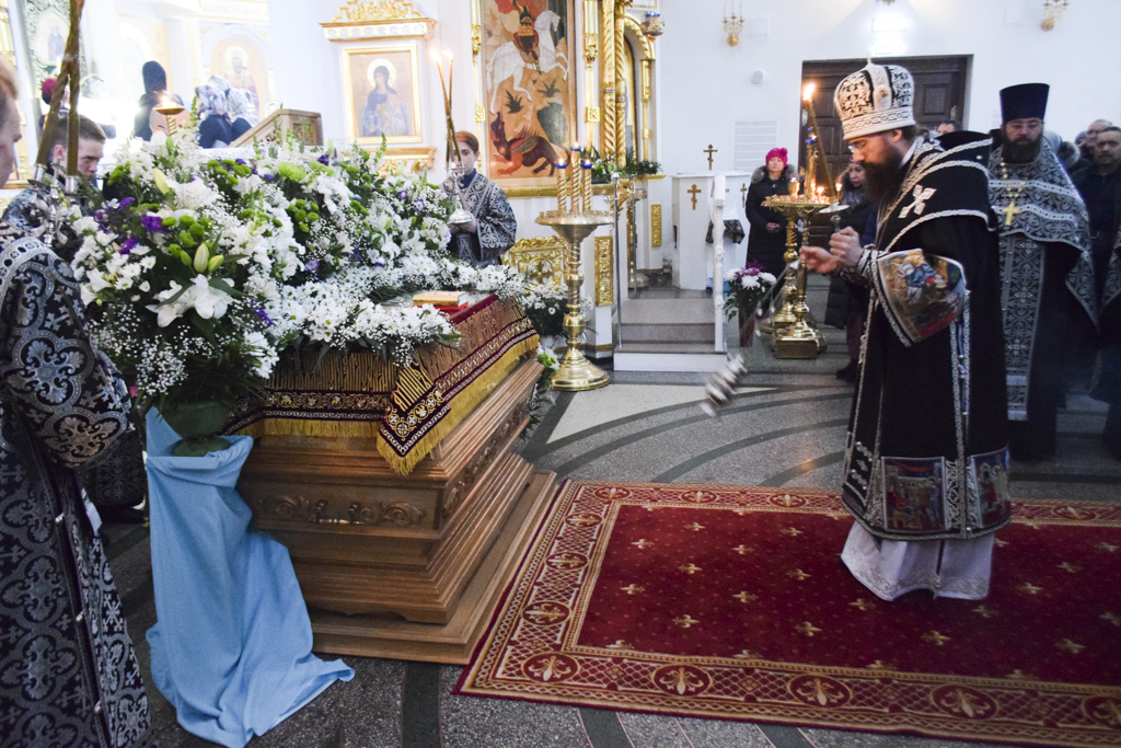 Его Преосвященству сослужили: секретарь Норильской епархии иеромонах Герман (Мельников); благочинный Норильского округа протоиерей Владимир Иванов; штатное духовенство кафедрального собора.