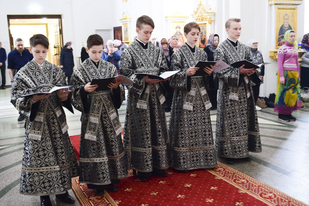 Его Преосвященству сослужили: секретарь Норильской епархии иеромонах Герман (Мельников); благочинный Норильского округа протоиерей Владимир Иванов; штатное духовенство кафедрального собора.