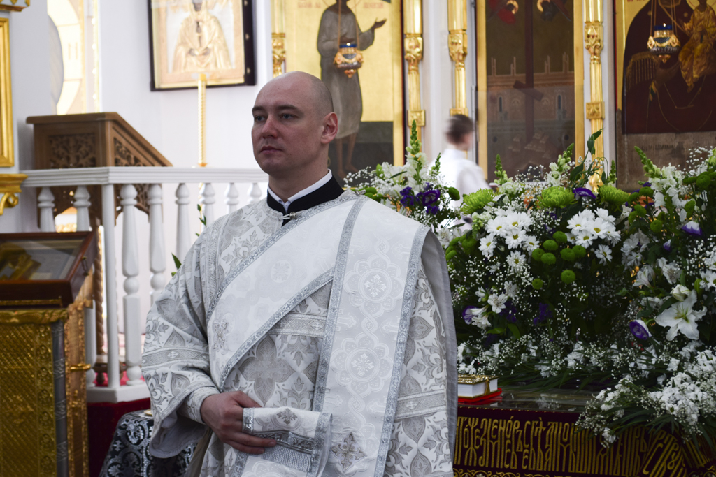 Традиционно, после Апостольского чтения, духовенство сменило темные облачения на белые.