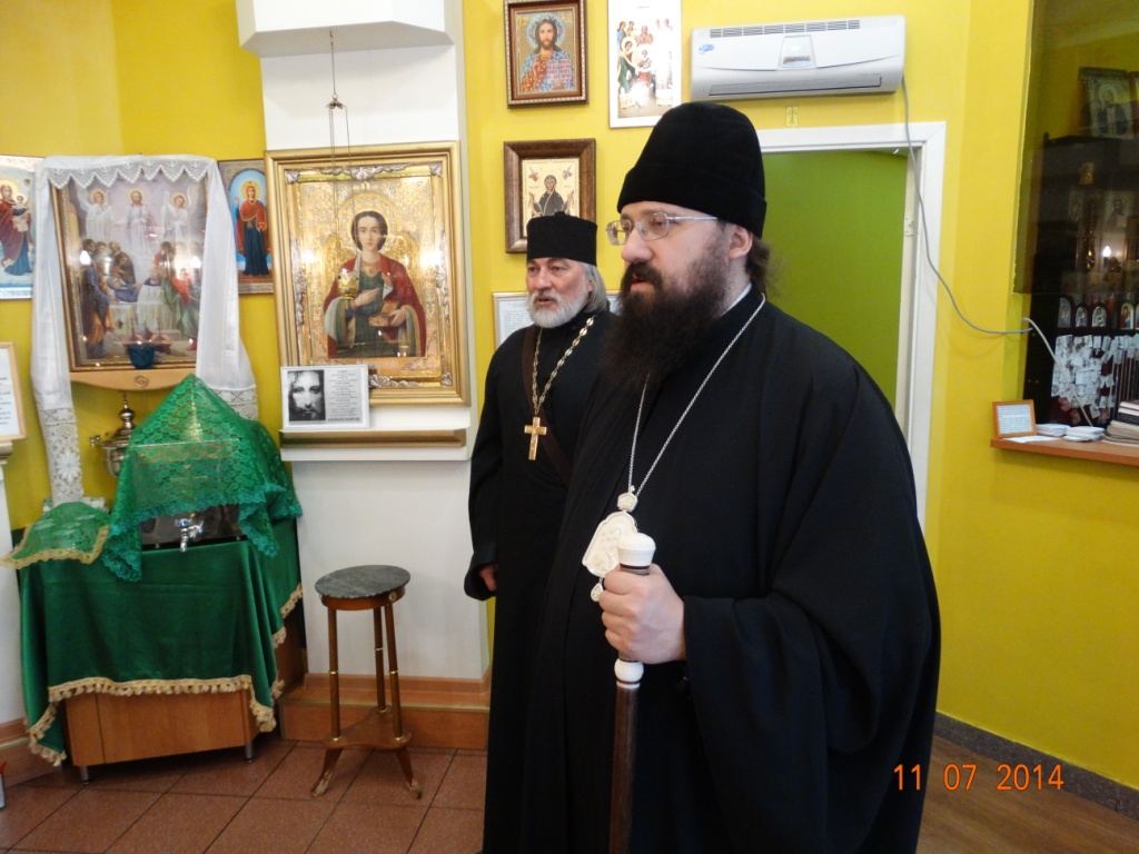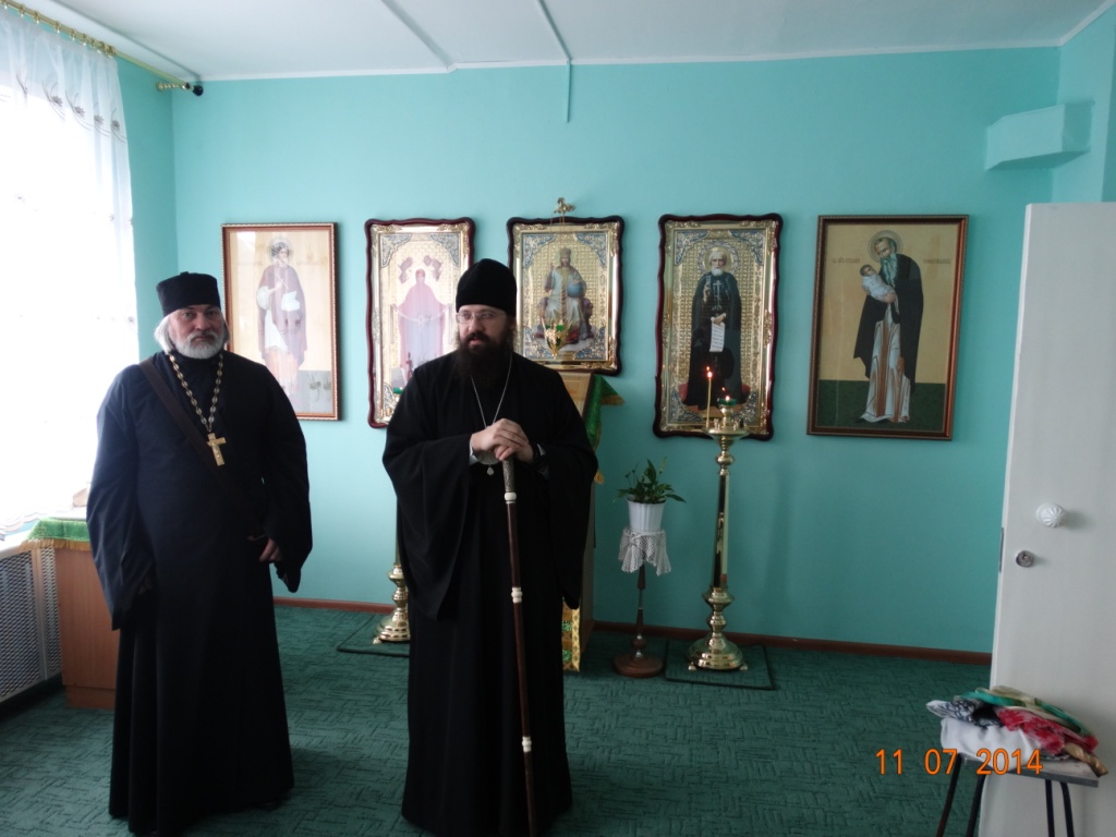 После осмотра строящегося храма Владыка посетил часовню в честь Святителя Николая, архиепископа Мир Ликийских, которая находится в здании автовокзала. Владыка поблагодарил протоиерея Владимира Иванова за труды, которые батюшка вкладывал в благоукрашение часовни на протяжении многих лет.