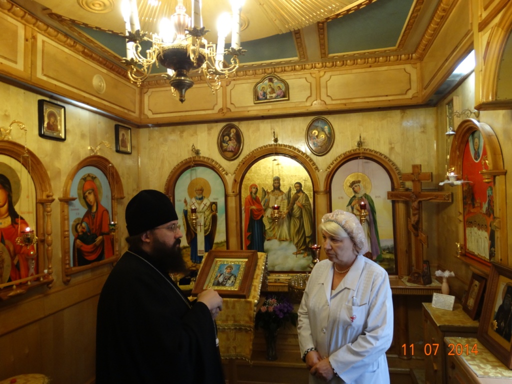 Следующим пунктом поездки стала часовня в честь Преподобного Сергия, Игумена Радонежского, находящаяся в детской больнице. После осмотра было принято решение совершить освящение часовни в день обретения мощей Преподобного Сергия – 18 июля.