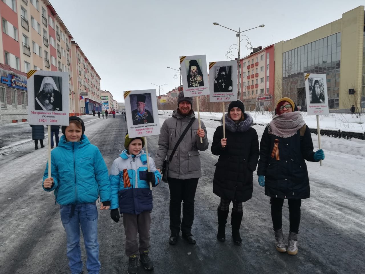 В этот день молодежный отдел Норильской епархии присоединился к шествию «Бессмертного полка». В руках ребята несли портреты священнослужителей-фронтовиков.