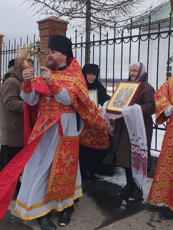 По благословению Преосвященнейшего Агафангела, епископа Норильского и Туруханского после Божественной литургии прихожане и братия монастыря совершили Крестный ход с мощами святого мученика Василия вокруг Свято-Троицкого храма.