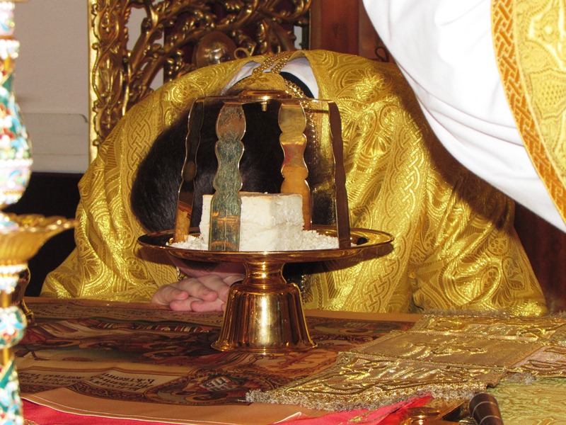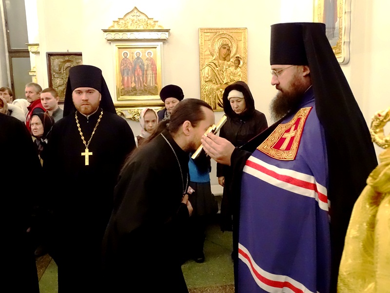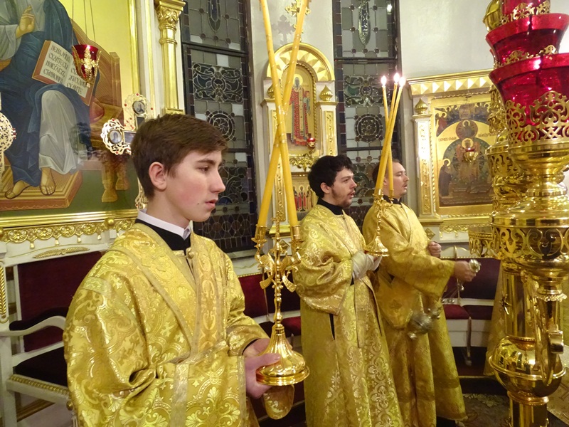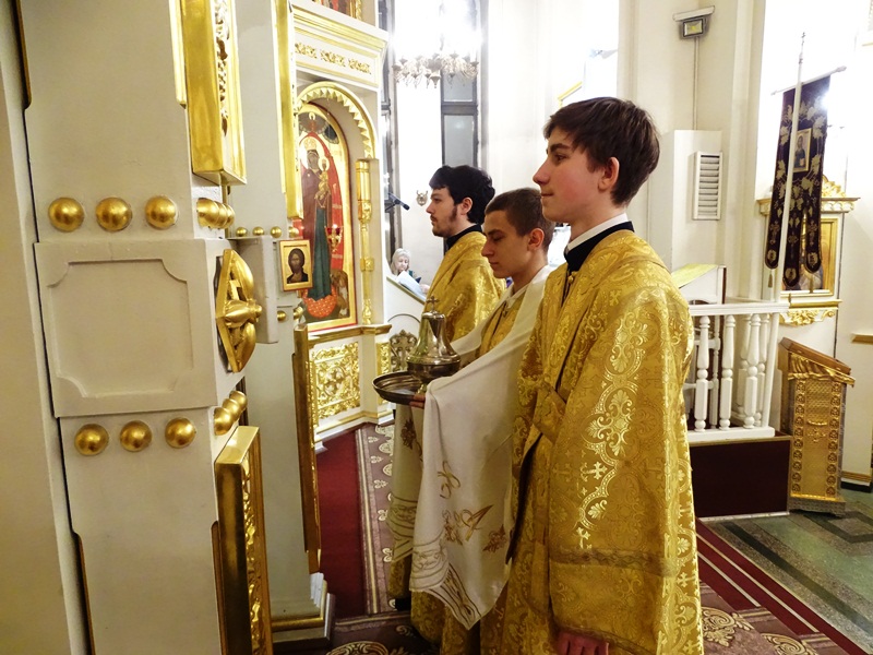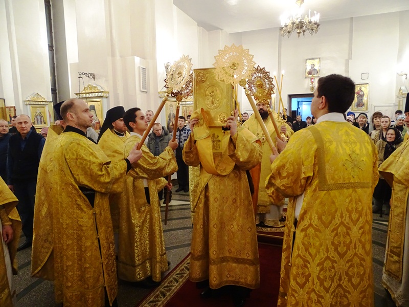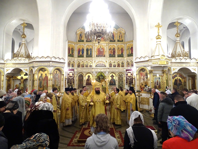 После Евангельского чтения Архипастырь произнес проповедь, в которой истолковал прочитанное зачало, а по окончании сугубой ектеньи вознес молитву об окончании междоусобной брани на Украине.