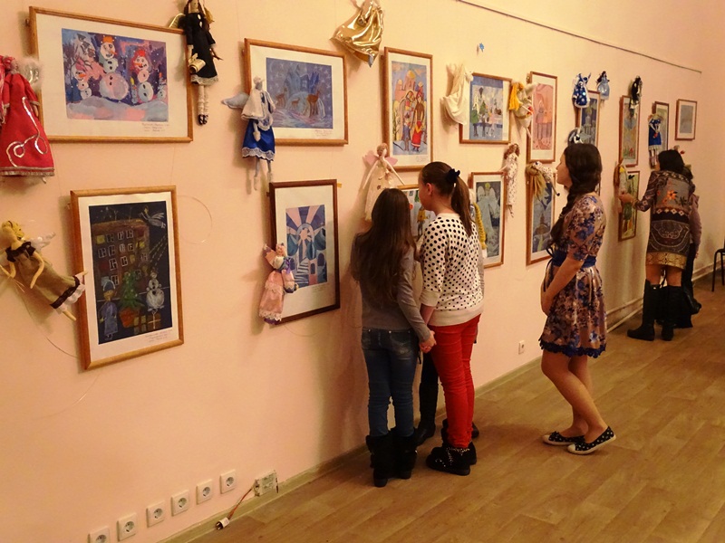 Рисунки и работы юных художников носят предпраздничный характер наступающих Рождественских торжеств и объединились под общим заглавием «В преддверии Рождества».
