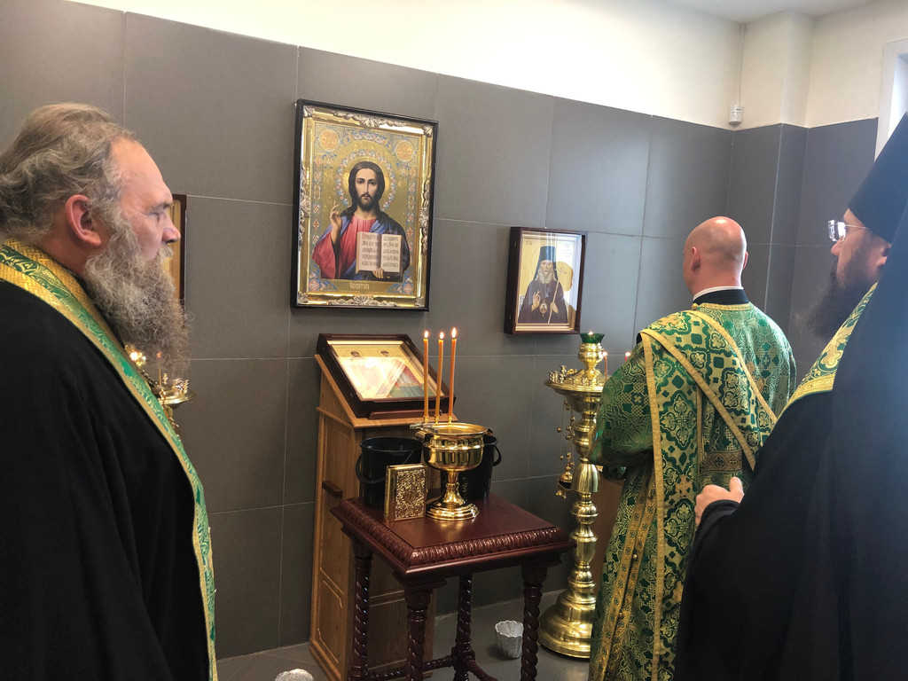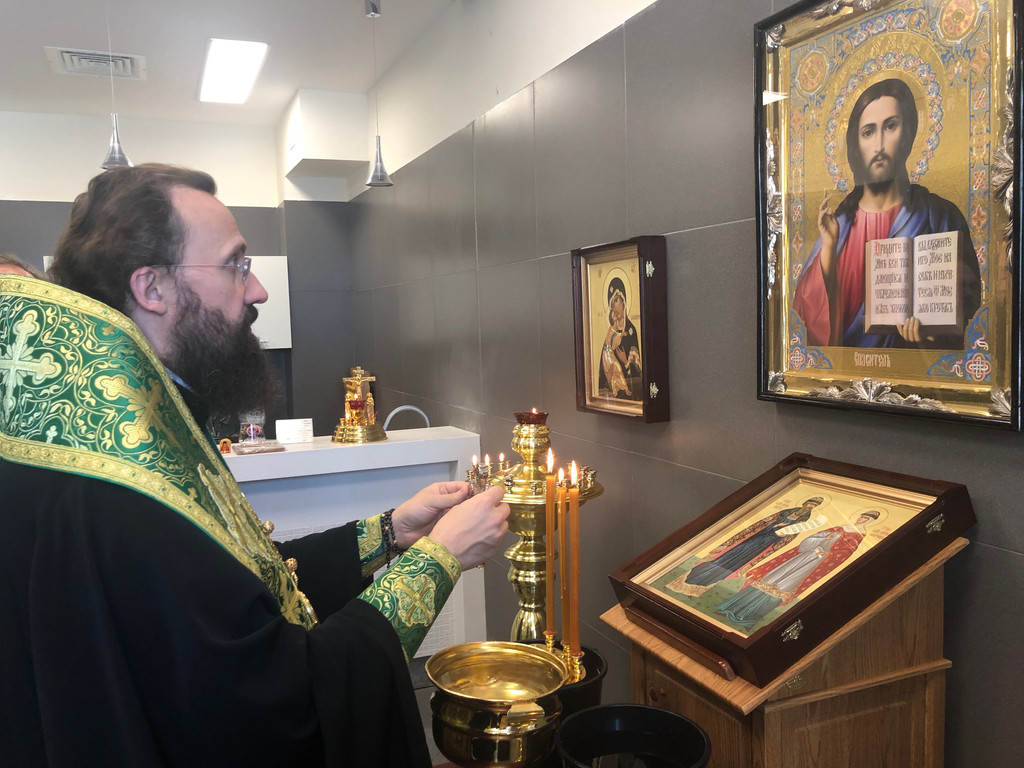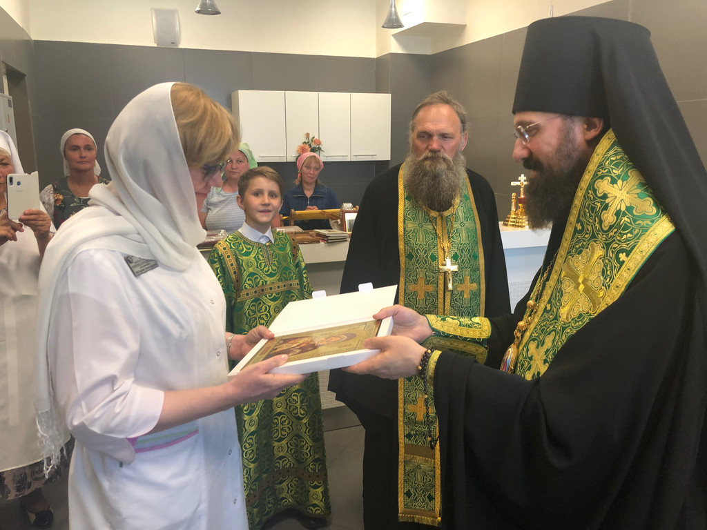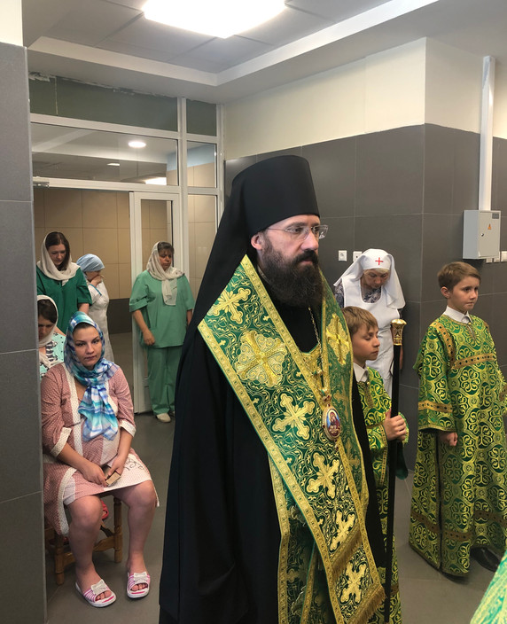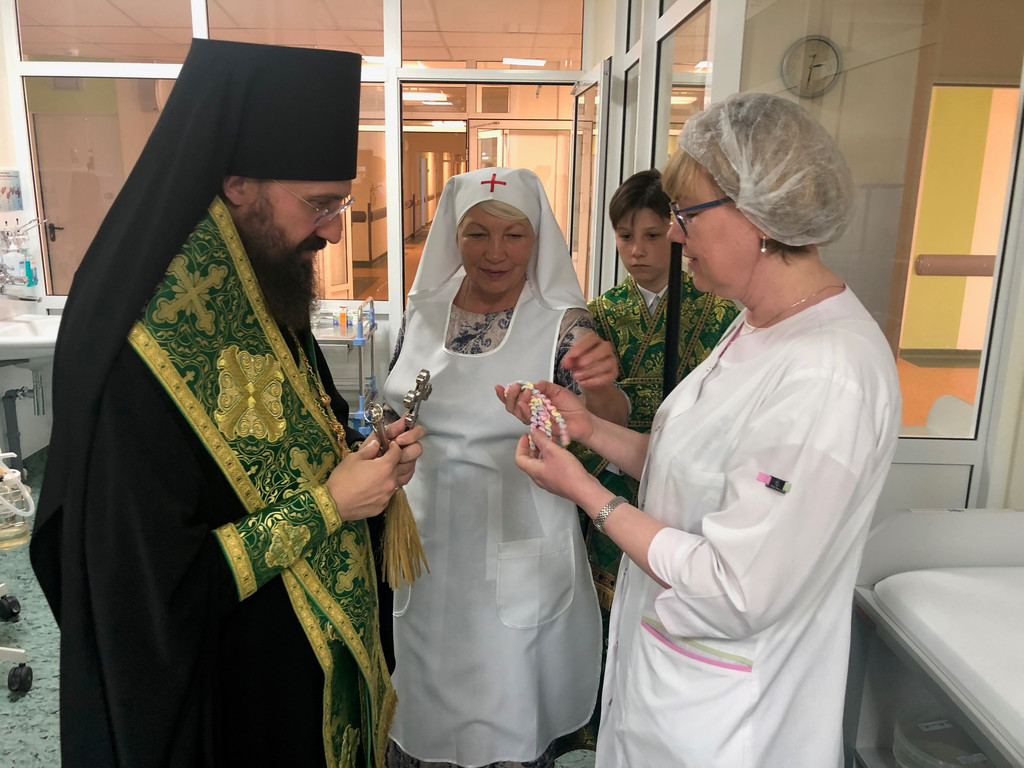 Архипастырь совершил водосвятный молебен в часовне в честь святых чудотворцев Петра и Февронии Муромских, которая находится на первом этаже медицинского учреждения.