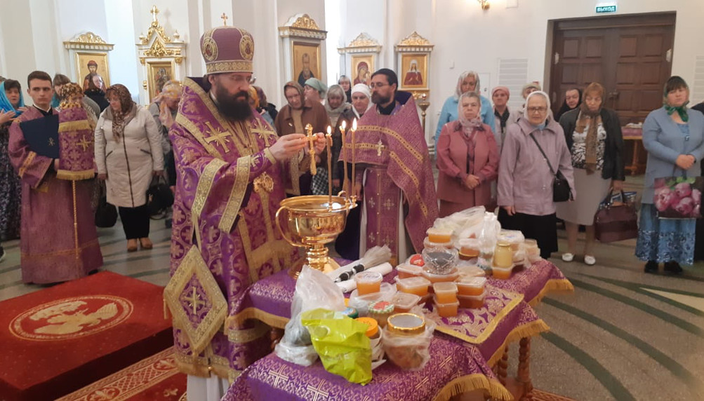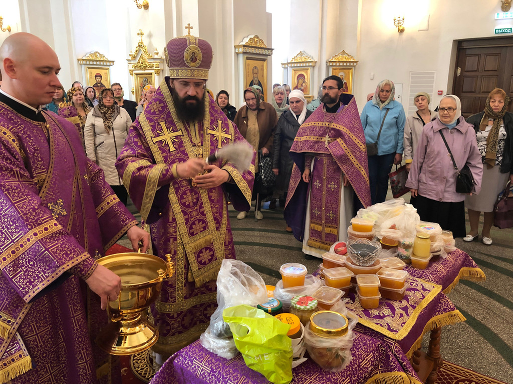 После окончания Богослужения Архипастырь совершил водосвятный молебен и освятил мед.