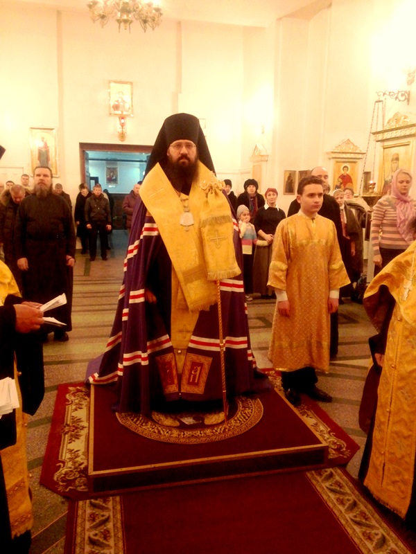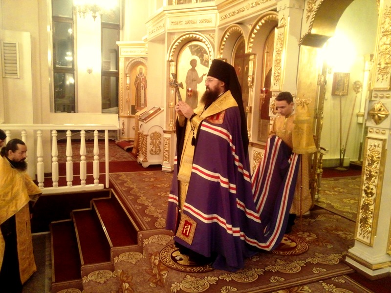 Его Преосвященству сослужили штатные клирики кафедрального собора.