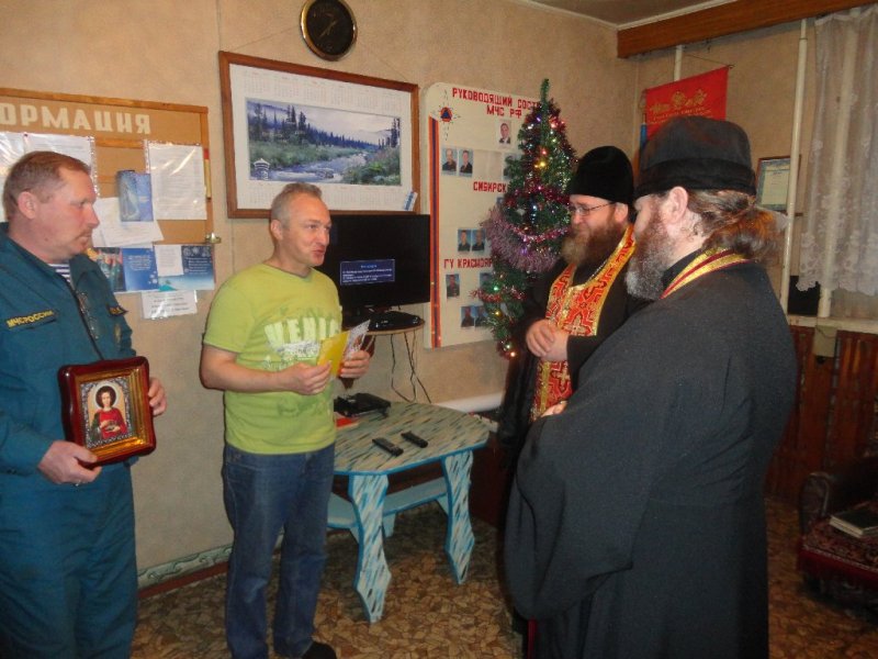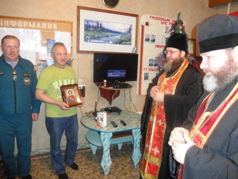 27 декабря 2014 года, в честь Дня Спасателя, по благословению Его Преосвященства Преосвященнейшего Агафангела епископа Норильского и Туруханского, настоятель храма св. мч. Василия Мангазейского поселка Бор иерей Александр Попов и иерей Сергий Немодин поздравили сотрудников местного отделения МЧС с профессиональным праздником. От имени владыки Агафангела, отец Александр. подарил икону св. вмч. Пантелеимона. Отцы пожелали сотрудникам крепкого здоровья и спокойных дежурств.