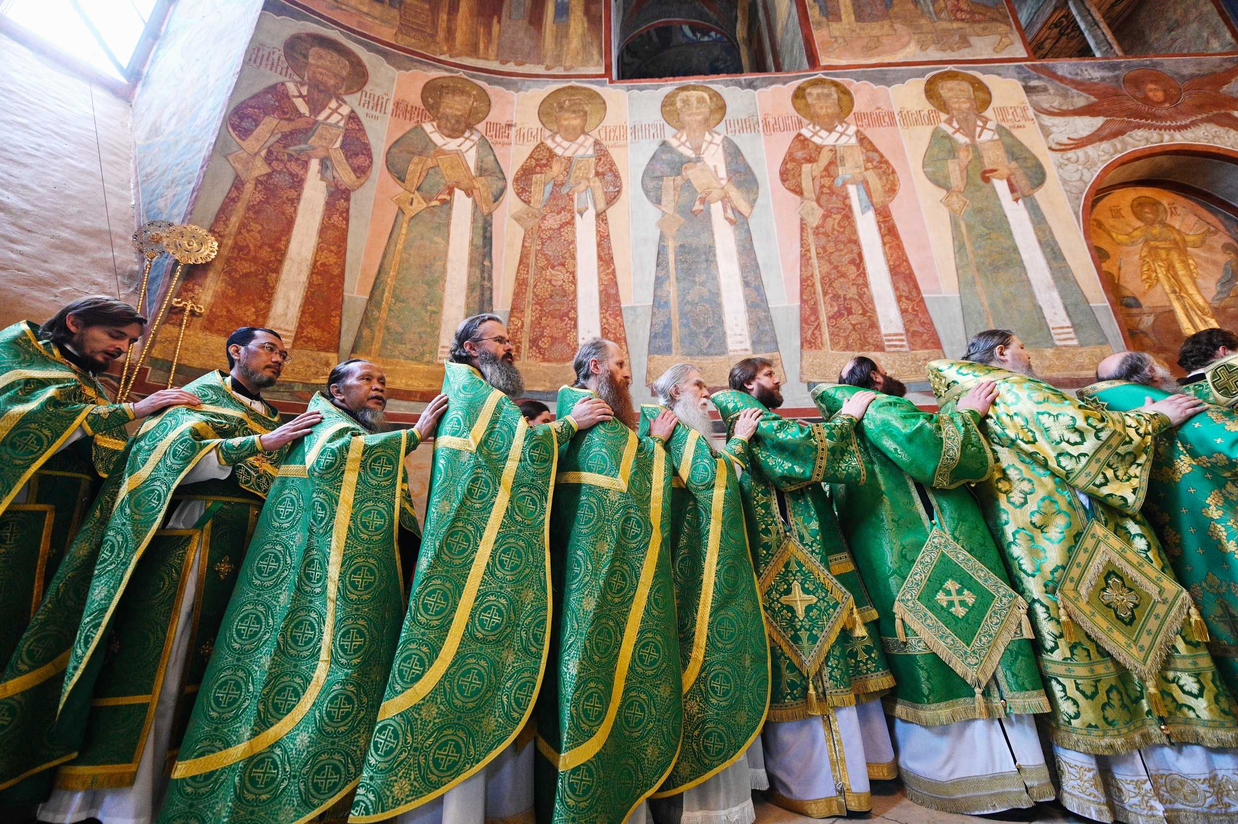 протопресвитер Владимир Диваков, секретарь Патриарха Московского и всея Руси по г. Москве; протоиерей Николай Балашов, заместитель председателя Отдела внешних церковных связей Московского Патриархата; архимандрит Павел (Кривоногов), наместник Саввино-Сторожевского ставропигиального монастыря; архимандрит Феофилакт (Безукладников), наместник Ново-Иерусалимского ставропигиального монастыря; игумен Петр (Еремеев), наместник Высоко-Петровского ставропигиального монастыря; иеромонах Агафон (Болотин), благочинный Троице-Сергиевой лавры; иеромонах Иоасаф (Тандибиланг), настоятель храма равноапостольного князя Владимира в Джакарте, клирик Патриаршего экзархата Юго-Восточной Азии; священник Борис Сетиаван, настоятель храма апостола Фомы в Джакарте, клирик Индонезийской миссии Русской Православной Церкви Заграницей; насельники Троице-Сергиевой лавры в священном сане; сонм духовенства.
