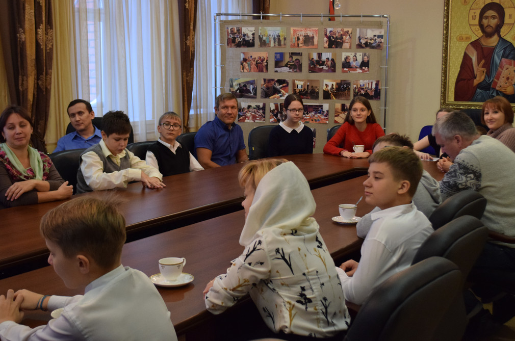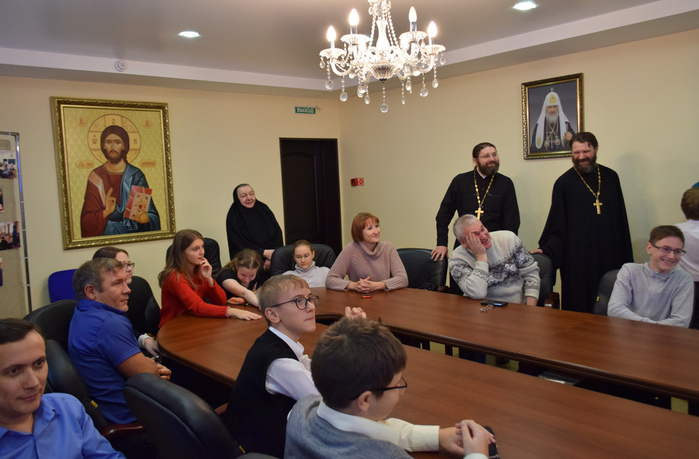 В конференц-зале Епархиального управления свою работу презентовал молодежный отдел епархии. Руководитель молодежного отдела священник Димитрий Прохоров, сотрудники отдела и волонтеры провели открытый урок для подростков – выпускников воскресных школы. Урок проходил в форме интеллектуальной игры, в которой участвовали не только ребята, но и их родители.
