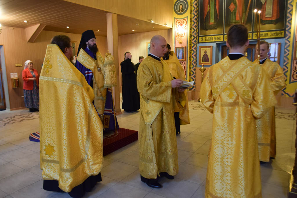 Его Преосвященству сослужили: настоятель Свято-Троицкого храма района Талнах протоиерей Даниил Тихонов; помощник благочинного Норильского округа иерей Геннадий Дубинко.