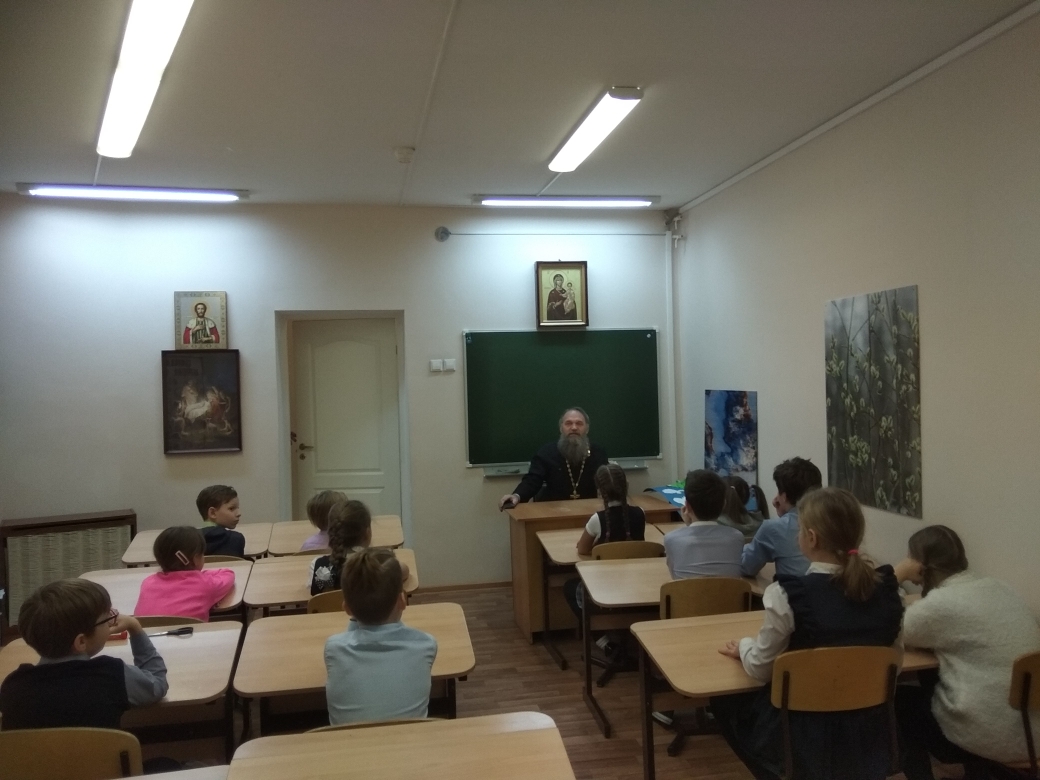 В рамках работы третей площадки «Александр Невский – святой» настоятель храма Преображения Господня района Кайеркан города Норильска иерей Александр Попов рассказал детям о том, кто такие святые, чем они отличаются от нас. Священник, на примере благоверного князя Александра, рассказал детям о проявлении милосердия и любви, и о жертвенном служении Богу и Отечеству.