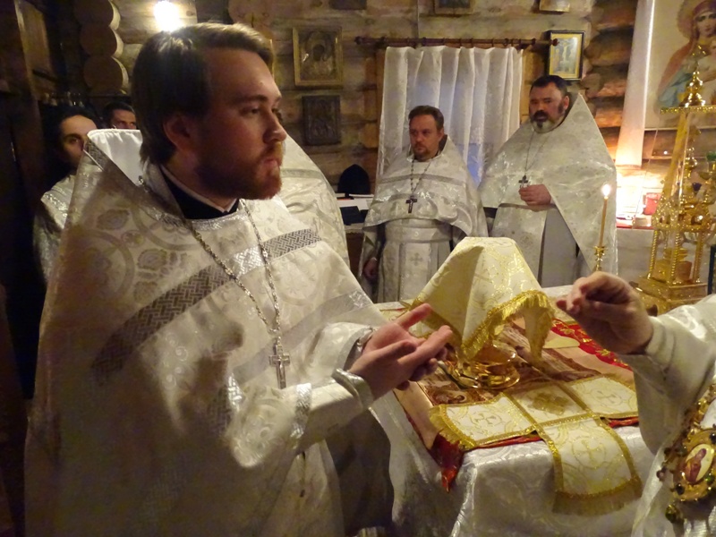 Его Преосвященству сослужили: иеромонах Герман (Мельников), исполняющий обязанности секретаря Норильской епархии; протоиерей Владимир Иванов, благочинный Норильского округа; протоиерей Даниил Тихонов, настоятель храма Святой Троицы района Талнах; протоиерей Димитрий Харцыз, председатель епархиального отдела по взаимодействию с Вооруженным Силами; иерей Сергий Кузьменко, ответственный Норильской епархии за взаимодействие с УФМС, штатный священник Талнахского храма; диакон Алекисй Трофимов, председатель епархиального отдела молодежного служения.